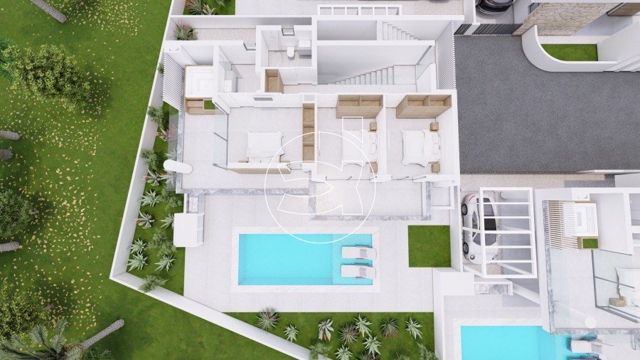 Diese Villa wurden so konzipiert, dass sie alle Ihre Bedürfnisse erfüllen und gleichzeitig den ihnen zur Verfügung gestellten Raum auf die modernste und anspruchsvollste Weise nutzen.
