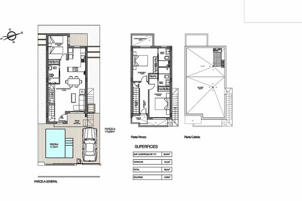 Villen mit 3 Schlafzimmern, 3 Bädern, Vorinstallation Klimaanlage, Privatpool und Kfz-Stellplatz