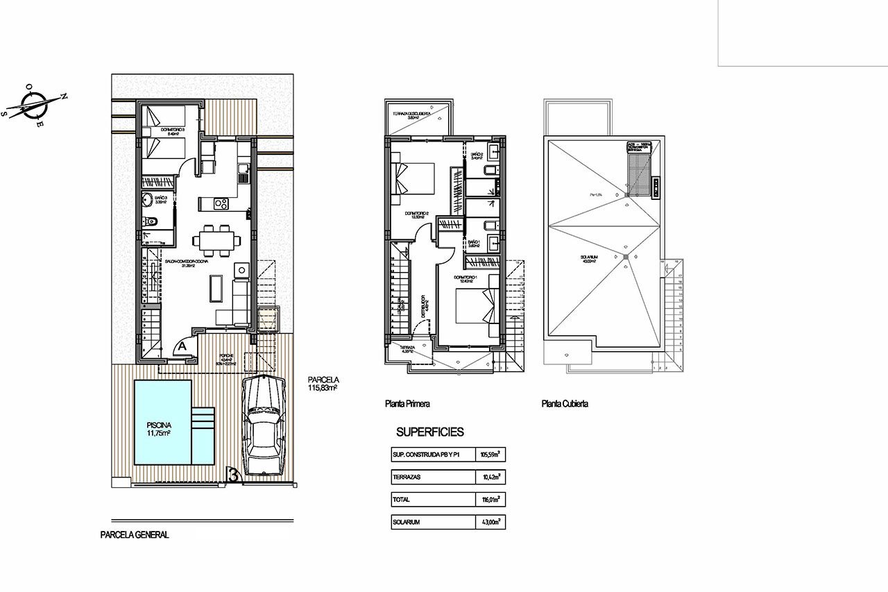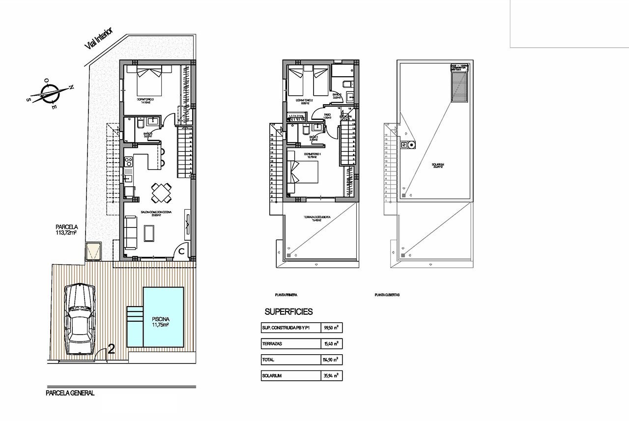 Diese wunderschönen und modernen Villen verfügen über eine konstruierte Fläche von ca. 113 m² - 116 m² (inklusive Terrassen) mit