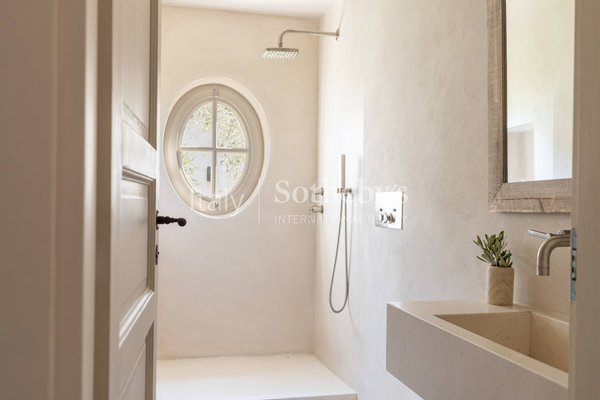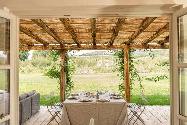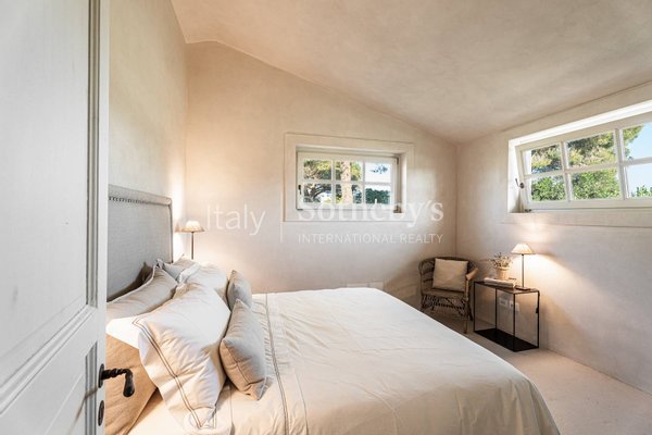 Capalbio, in der Nähe des Monte Argentario und der wunderschönen Strände der Maremma, befindet sich ein herrliches Landhaus mit Nebengebäude und Pool. Das Hauptgebäude, 300 Quadratmeter groß und umgeben von 4,5 Hektar Land, scheint ein exklusives und einzigartiges Erlebnis zu bieten. Jedes Detail und jede Oberfläche wurden sorgfältig gepflegt, um seinen Charme zu unterstreichen. Der Zugang über einen Außenhof, die Terrasse und die Panoramafenster, die zum hellen Wohnzimmer mit einem charakteristischen Kamin führen, wirken bezaubernd. Die Deckenbalken und die hochwertigen Holzböden verleihen einen Hauch von Authentizität. Die Anwesenheit einer hellen Küche und eines Esszimmers mit Blick auf den Garten trägt zur gemütlichen Atmosphäre bei. Der Schlafbereich mit drei hellen Schlafzimmern, darunter ein Hauptschlafzimmer mit eigenem Bad, bietet Komfort und Privatsphäre. Die Holztreppe, die zum oberen Stockwerk führt, mit einem panoramischen Raum, der ideal als Arbeitszimmer oder zusätzliches Schlafzimmer ist, ist ein faszinierendes Detail. Das Untergeschoss mit einem weiteren Schlafzimmer und Bad, einem Waschraum, einem Weinkeller und einem vielseitigen Raum wie einem Kinosaal oder einem Wellnessbereich, verleiht der Immobilie Vielfalt und Funktionalität. Die Anwesenheit eines Nebengebäudes, 100 Quadratmeter groß, im Stil eines Wohnbereichs, zwei Schlafzimmern, zwei Bädern und einem Arbeitszimmer, bietet zusätzlichen Platz und Gastfreundschaftsmöglichkeiten. Außen, der gepflegte Garten mit einem bezaubernden Blick auf den großzügigen Pool, scheint ein perfekter Ort für Entspannung und Outdoor-Zeit zu sein. Diese Villa zur Miete scheint wirklich ideal für diejenigen, die eine exklusive Residenz in der Maremma suchen, in einer Umgebung von Ruhe und Privatsphäre.