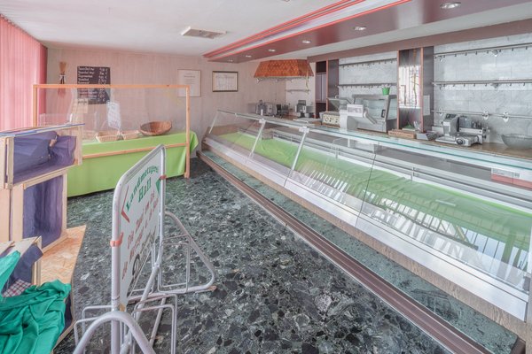 Im Untergeschoss befinden sich ein Verkaufsraum, ein Kühlraum, technische Räume und PKW-Garagen.