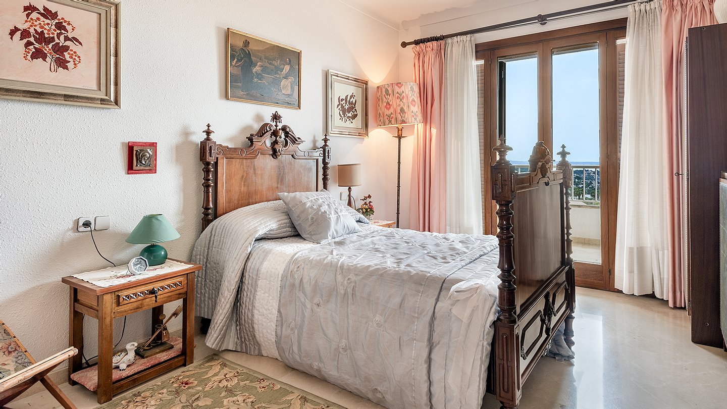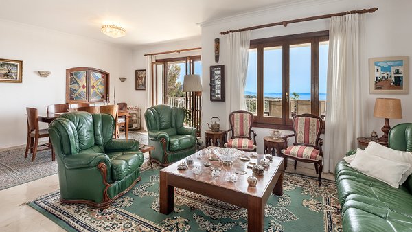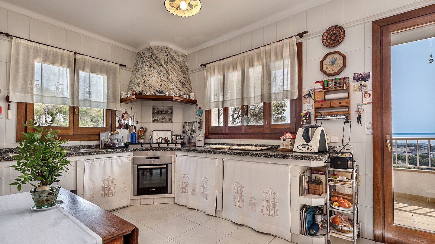 Diese charmante Villa verfügt über eine Grundstücksfläche von ca. 1200 m2 und eine bebaute Fläche von ca. 350 m2. Die Aufteilung ist wie folgt: 7 Schlafzimmer, 3 Badezimmer, Wohnzimmer, Esszimmer, ein weiteres Wohnesszimmer, Gäste-WC, voll ausgestattete Einbauküche, Arbeitszimmer, Hauswirtschaftsraum, Abstellraum und Keller. Die Mallorca Immobilie hat viel Potential zur Umgestaltung und bietet Ihnen die Möglichkeit, sich Ihre eigene Wohlfühloase zu schaffen. Großflächige Fensterfronten ermöglichen einen herrlichen Meerblick und füllen die Räumlichkeiten mit viel natürlichem Licht. Weitere Ausstattungsmerkmale sind: Kamin, vorinstallierte Zentralheizung, doppelt verglaste PVC- Fenster mit Blenden, Alarmanlage, Einbauschränke, Holzbalkendecken, Marmorböden und vieles mehr. Der gepflegte Außenbereich mit erfrischendem Pool und gepflegtem Garten rundet dieses tolle Angebot ab.