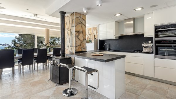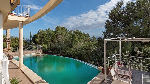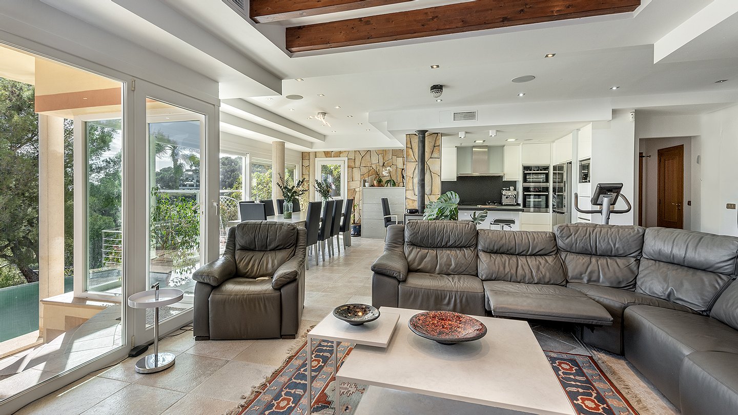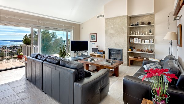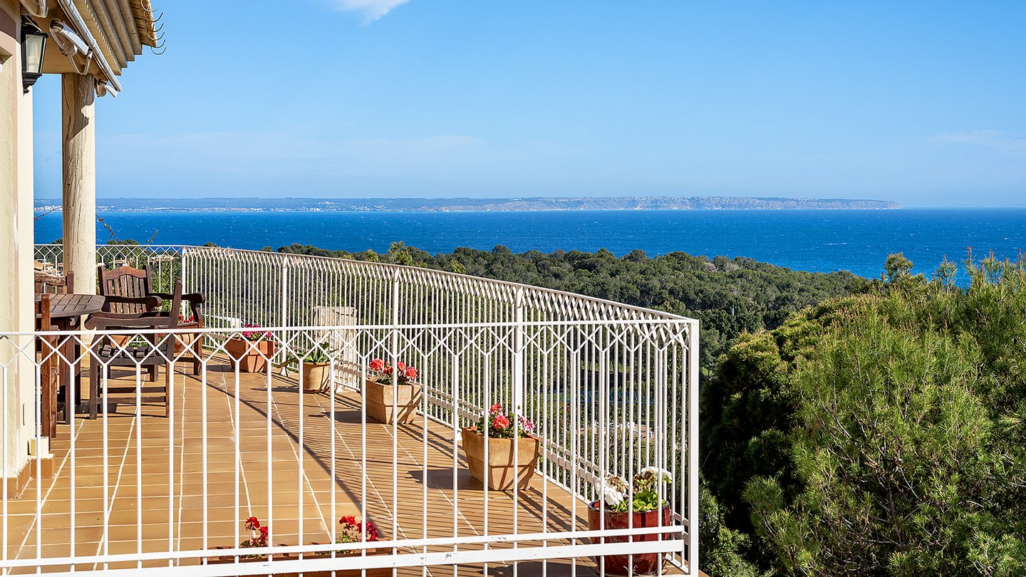 Charmante Luxusvilla mit einem absoluten Traumblick in exklusiver Wohngegend ?Anchorage Hill?. Diese mediterrane Villa befindet sich in bester Lage von Bendinat in Südausrichtung und mit fantastischem Meerblick. Das Anwesen verfügt über eine Grundstücksfläche von ca. 988 m2 und eine bebaute Fläche von ca. 400 m2. Auf 2 Wohnebenen verteilen sich: 5 Schlafzimmer mit Bädern en suite, Ankleide, Gäste-WC, Wohnesszimmer, 2 voll ausgestattete Einbauküchen, Hauswirtschaftsraum und Abstellraum. Bodentiefe Fensterfronten ermöglichen einen herrlichen Blick auf das Meer und die umliegende Natur. Weitere Ausstattungsmerkmale sind: offener Kamin, dreifach verglaste PVC-Fenster mit Blenden, Solaranlage, Einbauschränke, Holzbalkendecken, Fliesenböden, 2 Garagenplätze, ein zusätzlicher Stellplatz und vieles mehr. Der gepflegte Außenbereich mit Salzwasserpool, Jacuzzi und schönen Terrassenbereichen lädt zum Entspannen und Verweilen ein. Genießen Sie den Luxus und das Ambiente dieser Villa. Immobilien in dieser Lage gehören zu den besten Investitionen auf Mallorca.Der beliebte Ort Bendinat befindet sich in einer bezaubernden Lage an der Küste, in der Bucht von Palma. Es ist eine außerordentlich beliebte und exklusive Urbanisation mit Luxusvillen inmitten mallorquinischer Natur. Viele Bars und Restaurant, mehrere internationale Schulen, Golfplätze, sowie Einkaufsmöglichkeiten und Fachärzte sind in der Umgebung. Der internationale Flughafen ist in ca. 15 Minuten erreichbar. Diese Mallorca Immobilie wird Ihnen präsentiert von Ihrem Immobilienmakler Mallorca, Casa Nova Properties in Santa Ponsa. Für den Käufer entsteht keine Maklercourtage.