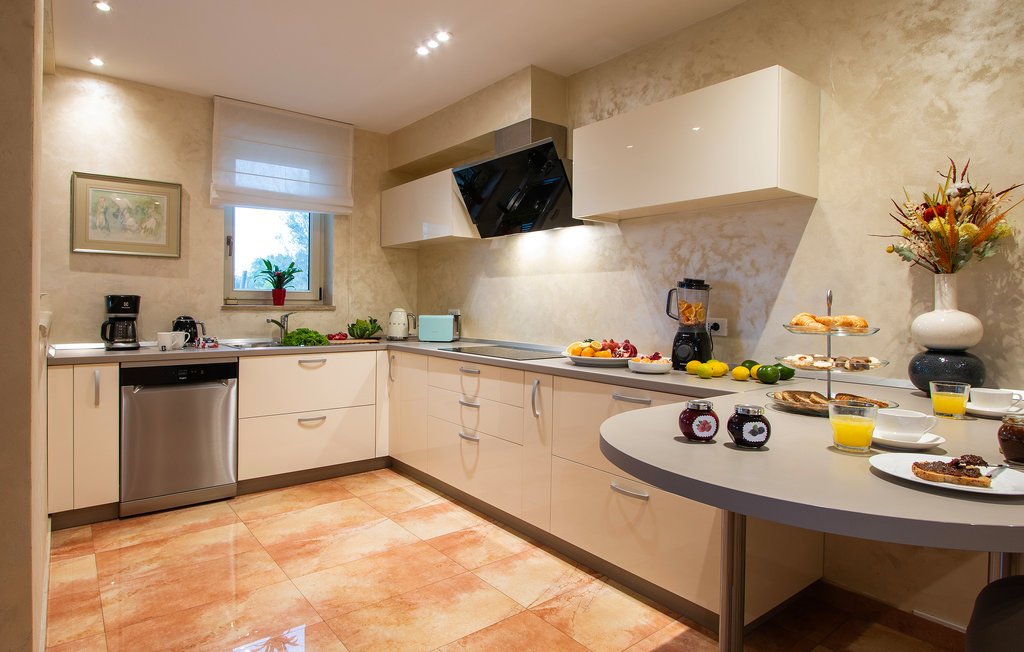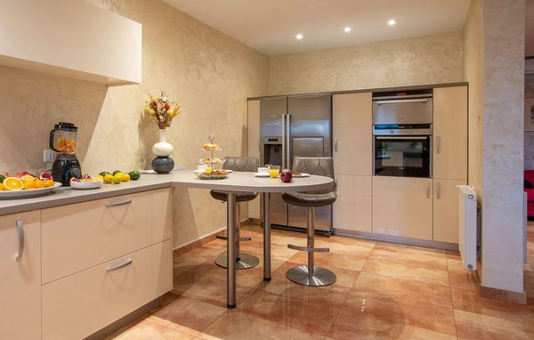 Das Innere der Villa erstreckt sich über 530 m² und besteht aus 2 Etagen. Es zeichnet sich durch ein angenehmes und modernes Interieur aus, und das Design und die Ausstattung werden auch die anspruchsvollsten Geschmäcker befriedigen. Im Erdgeschoss der Villa werden Sie von einem offenen Raum begrüßt, der aus einer Küche, einem Wohnzimmer und einem Esszimmer besteht. Die Küche ist komplett ausgestattet und bereit, köstliche Mahlzeiten zuzubereiten, die im Essbereich im Innenbereich mit Blick auf den Innenhof und den Pool genossen werden können. Alle Zimmer sind klimatisiert.