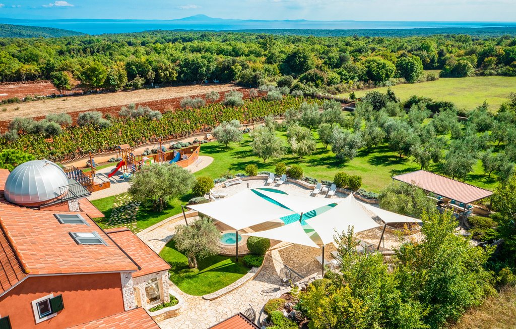 Der Spaß und das gesellige Beisammensein in dieser Villa werden kein Ende nehmen. Es ist ideal für größere Gruppen von Freunden oder mehrere Familien mit Kindern und ermöglicht auch den Aufenthalt von Gruppen von Jugendlichen. Der Hauptvorteil der Villa ist sicherlich der Aufenthaltsraum, der die ganze Gruppe beherbergen kann. Spielen Sie Billard, Tischfußball oder Darts oder spielen Sie am Kamin Brettspiele (Karten, Monopoly, Schach). Oder singen und tanzen - keine Sorge, es gibt viel Platz. Die Villa bietet auch etwas für diejenigen, die eine Kombination aus Erholung und Entspannung mögen. Im Inneren der Villa finden Sie einen Fitnessraum mit Trainingsgeräten und einen Indoor-Wellnessbereich mit Whirlpool und Sauna. Den Hauptstern heben wir uns für den Schluss auf, aber er ist etwas, das Ihnen ins Auge fallen wird, sobald Sie das Anwesen betreten. Von einem der Schlafzimmer führt eine Treppe zu nicht weniger als einem Observatorium, wo Sie in einer klaren Sommernacht einen Blick auf den bezaubernden Sternenhimmel genießen können.