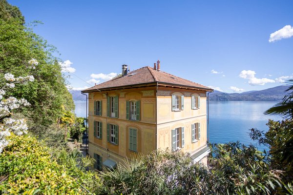 Eingebettet in die zeitlose Schönheit des Lago Maggiore, ist diese bezaubernde Herrenresidenz aus dem späten 19. Jahrhundert. In einer beneidenswerten Lage entlang der Ufer des Sees gelegen, verfügt die Villa über eine private Boje zum Anlegen von Booten und einen Kai auf staatlichem Grund, der einen privilegierten Zugang zu den Gewässern des Sees bietet. Die Eleganz der Villa wird durch den umgebenden Park betont, einen üppigen Garten von etwa 10.000 Quadratmetern, der die Möglichkeit bietet, einen Pool mit einem bereits genehmigten Projekt zu realisieren. Die Renovierung von 2000 hat den ursprünglichen Glanz der Villa bewahrt, mit hochwertigen Oberflächen, die jedem Raum zeitlose Eleganz verleihen. Die Villa erstreckt sich über vier Ebenen und bietet eine großzügige Raumaufteilung mit einladenden und hellen Räumen. Im Erdgeschoss führt ein geräumiger Eingang zu einer voll ausgestatteten Küche, einem Büro, einem Esszimmer mit Kamin und einer Bibliothek mit direktem Zugang zur Terrasse und zum Garten. Im ersten Stock befindet sich ein elegantes Wohnzimmer mit Kamin, zwei Schlafzimmer und ein luxuriöses Marmorbadezimmer mit Dusche und Badewanne. Im zweiten Stock befinden sich drei weitere Schlafzimmer und zwei Badezimmer, während das Untergeschoss drei Keller, eine Waschküche und einen Technikraum beherbergt. Das Anwesen umfasst auch eine unabhängige Gästewohnung mit eigener Terrasse, Grillplatz und einem kleinen blühenden Teich. Eine separate Dependance, die über malerische Pfade im privaten Park erreichbar ist, gehört auch zum Anwesen.