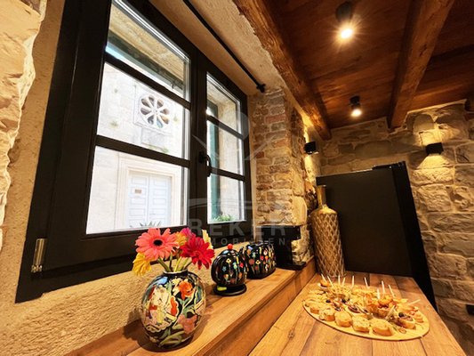 Inmitten der reizvollen Stadt Kastela erwartet Sie ein authentisches Steinhaus, das nur wenige Schritte vom Meer entfernt liegt. Das charmante Reihenhaus besticht durch sein rustikales und beeindruckendes Erscheinungsbild, das die Geschichte und Tradition der Region widerspiegelt. Die zentrale Lage ermöglicht es Ihnen, das Beste der Stadt und der Küste zu genießen. Tauchen Sie ein in die Atmosphäre dieses einzigartigen Anwesens und lassen Sie sich von seinem unverwechselbaren Charme verzaubern. Ein wahres Juwel, das darauf wartet, von Ihnen entdeckt zu werden.