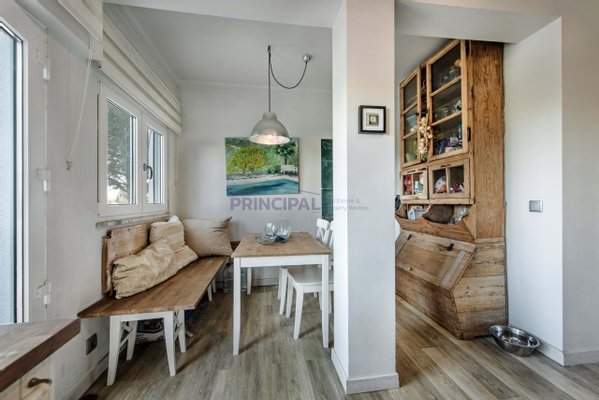 Das Erdgeschoss besteht aus einer Eingangshalle, einem Wohn- und Esszimmer mit Kamin, einer ausgestatteten Küche mit Essbereich und Balkon, 1 Schlafzimmer mit Einbauschränken, das derzeit als Büro genutzt wird, 1 Suite (mit eigenem Bad mit Badewanne) und 1 Servicebad. Es gibt auch einen zusätzlichen Raum, der derzeit als Waschküche dient (ursprünglich ein Badezimmer).