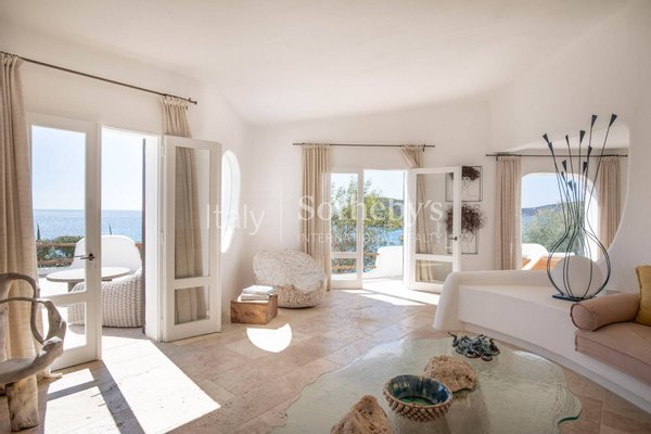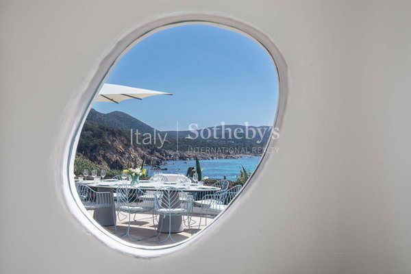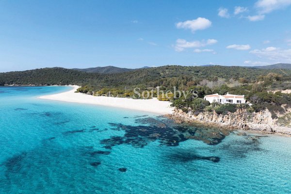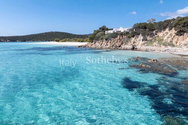 Diese wunderschöne Villa ist eine der wenigen Wohnungen in der Gegend, die eine exklusive Position in erster Reihe mit direktem Zugang zum weißen Strand von Tuerredda und seinem kristallklaren Wasser genießt. Die Villa befindet sich an der panoramareichsten Stelle eines Grundstücks, das sich über etwa 2 Hektar entlang der Küste erstreckt.