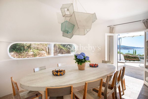 Die architektonisch inspirierte Villa wurde im Laufe der Zeit perfekt gepflegt und bietet großen Komfort mit mehreren Innen- und Außenbereichen für die Eigentümer und ihre Gäste. Die Inneneinrichtung des Hauses besteht aus einem hellen, sonnenbeschienenen Wohn- und Essbereich mit außergewöhnlichem Blick. Dieser zentrale Unterhaltungsbereich bietet Zugang zu einer einladenden Panorama-Veranda mit Blick auf das Meer. Diese außergewöhnliche Veranda ist das Herz des Hauses, wo man bei einem Glas Wein und im Hintergrund das Meeresrauschen speisen kann.