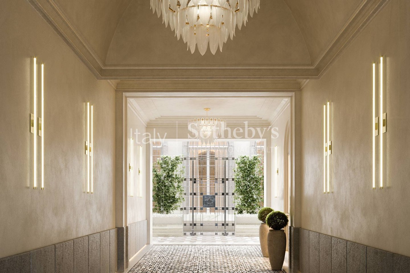 Das von den Architekturbüros Tamburini und dL Engineering aus Rom (Restaurierung) und Scandurra aus Mailand (Innenarchitektur) unterzeichnete Gebäude wird einer vollständigen Restaurierung unterzogen, die in der Lage ist, allen Komfort von heute mit großem Respekt vor den ursprünglichen Materialien und unter Beibehaltung des Charmes von zu bieten die Zeit. Der edle Eingang führt in moderne Umgebungen, die bis ins Detail durchdacht sind und den Bedürfnissen des täglichen Lebens entsprechen. Drei Treppen, von denen eine monumental ist, mit Aufzügen der neuesten Generation, bedienen die verschiedenen Stockwerke für insgesamt 30 Wohnungen, alle einzigartig und unterschiedlich, von denen vier große Terrassen haben. Jedem Apartment wurde ein unverwechselbarer Name gegeben, der sich von den großen italienischen Meistern inspirieren ließ: Maler, Bildhauer, Dichter und Komponisten.