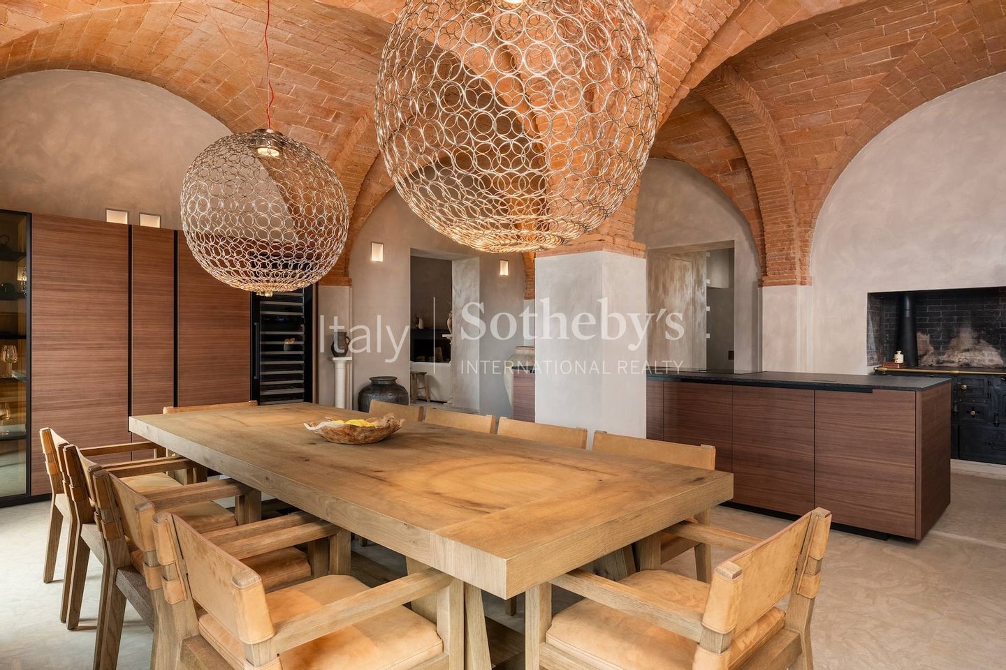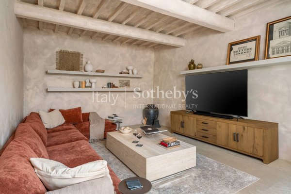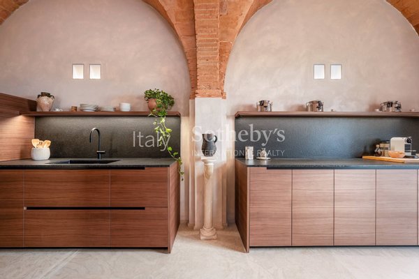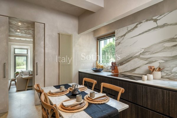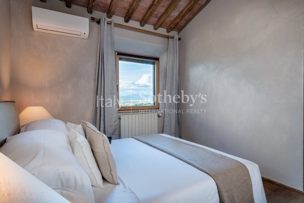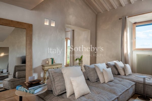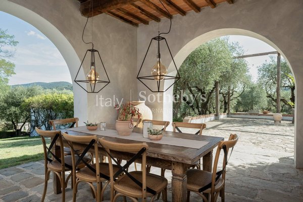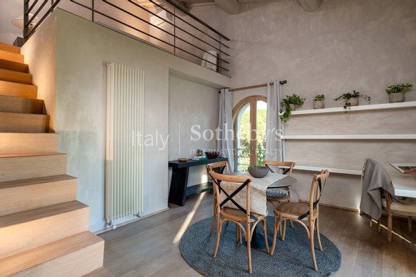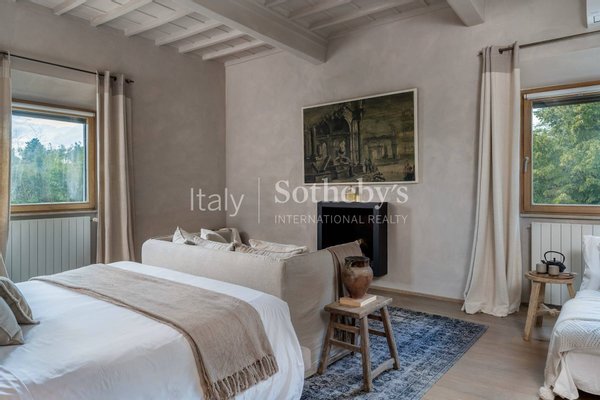 The dining room is designed for large gatherings, with a long reclaimed wood table surrounded by large windows where you can appreciate the beauty of the Florentine countryside. The updated contemporary kitchens feature modern appliances such as a dishwasher, Nespresso coffee machine, fryer, and oven.