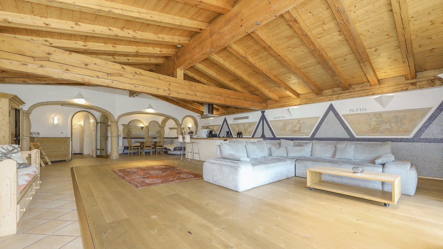 Insgesamt stehen 1 gigantisch großes Wohnzimmer mit integrierter Küche im Ausmaß von ca. 90 m², 4 Schlafzimmer, 4 Badezimmer, mehrere Schrankräume, Arbeitszimmer, Abstellräume, Wellnessbereich mit Sauna und Ruheraum, Wirtschaftsraum und weitere Räumlichkeiten zur Verfügung.