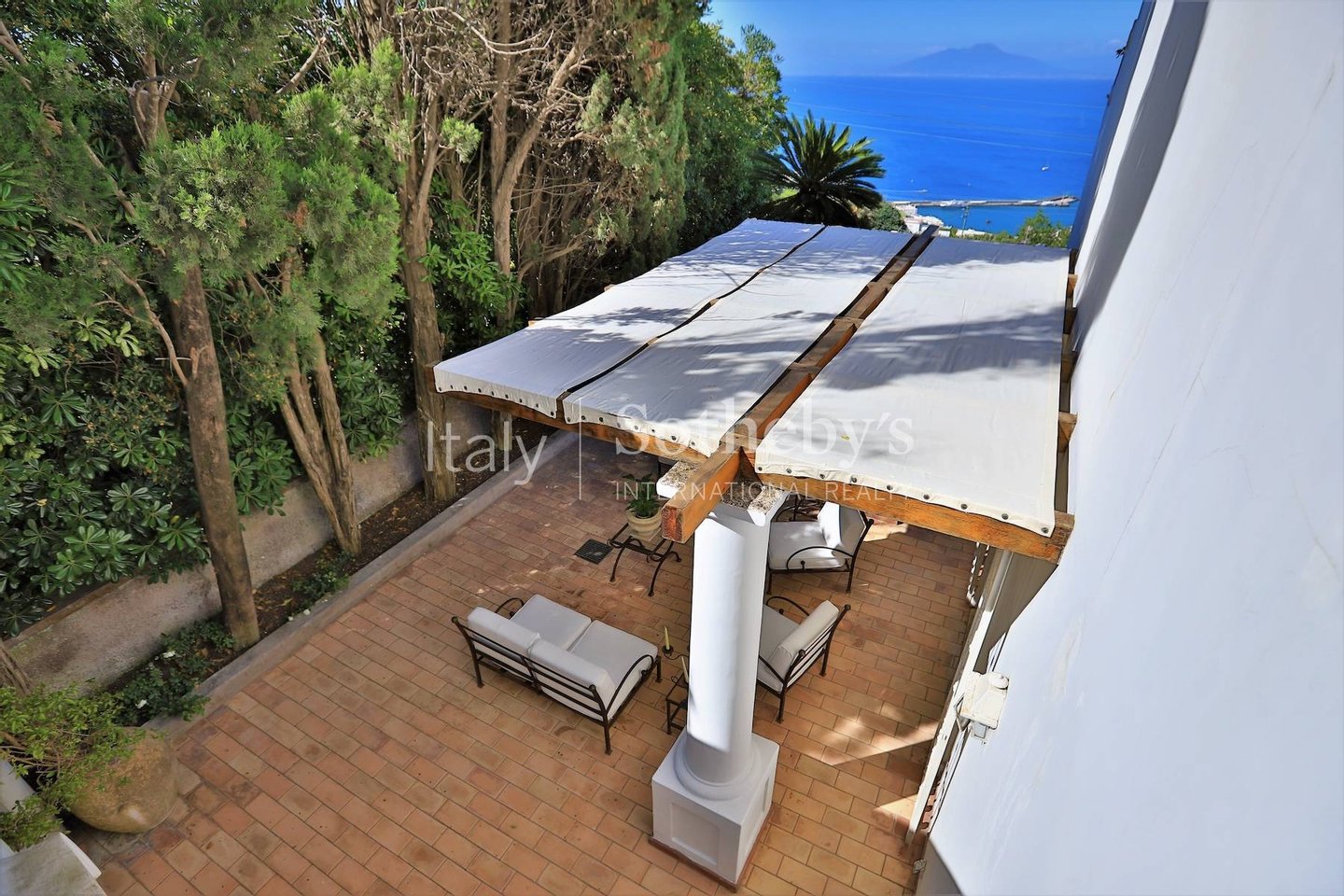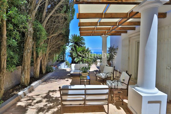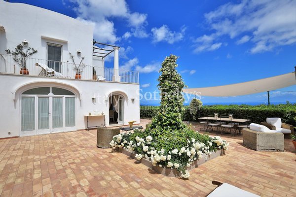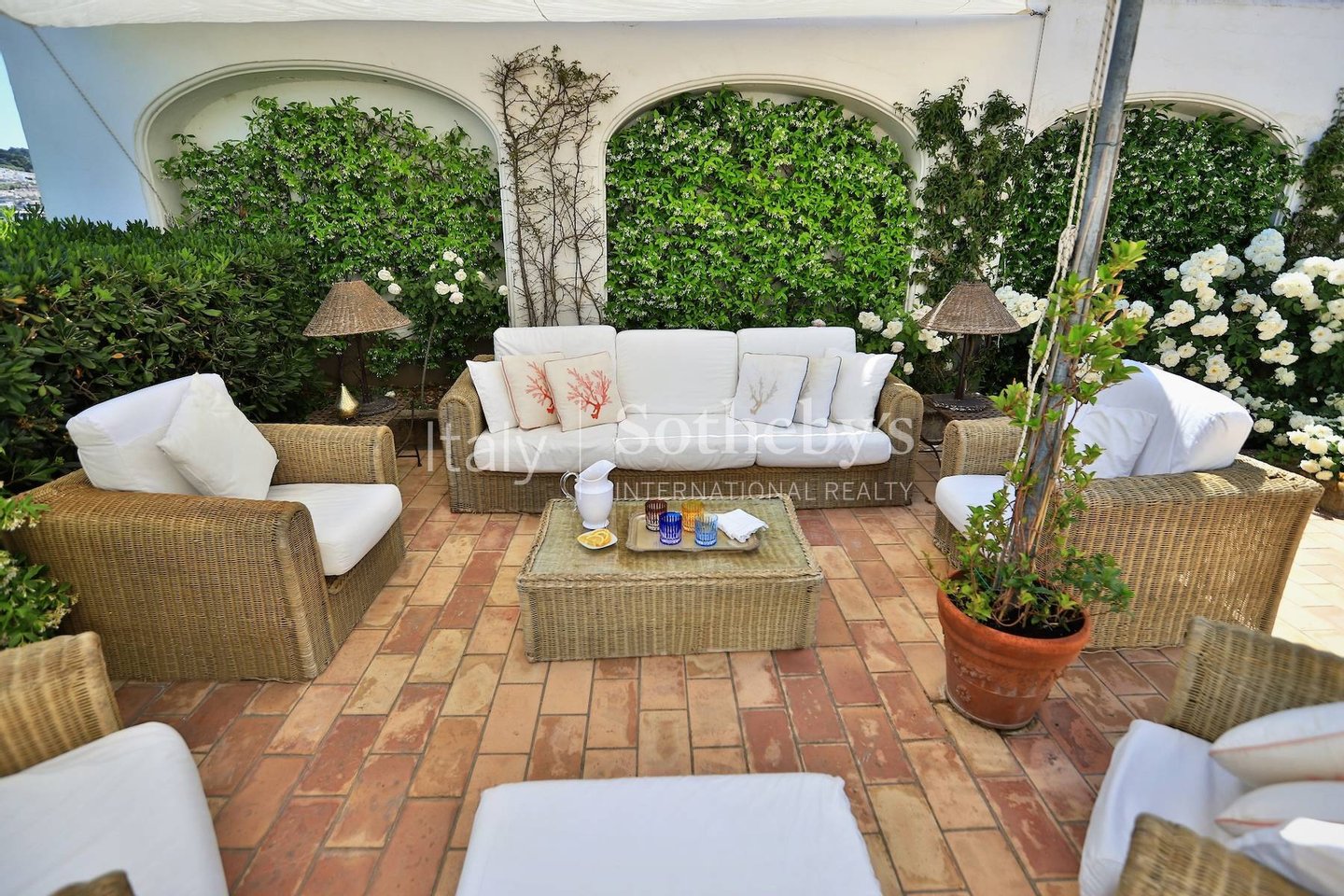 Excellently positioned and equipped with spacious panoramic terraces, it boasts a splendid 360° panorama with views of the center of Capri, the Sorrentine Peninsula, the port, reaching all the way to Mount Vesuvius and part of the Gulf of Naples.