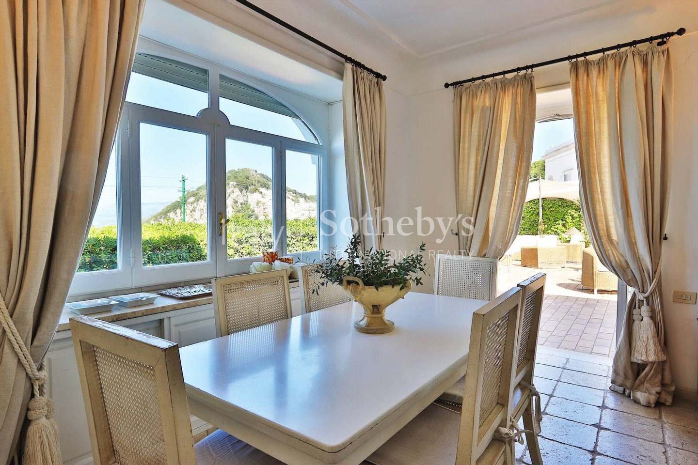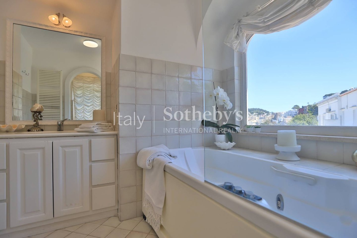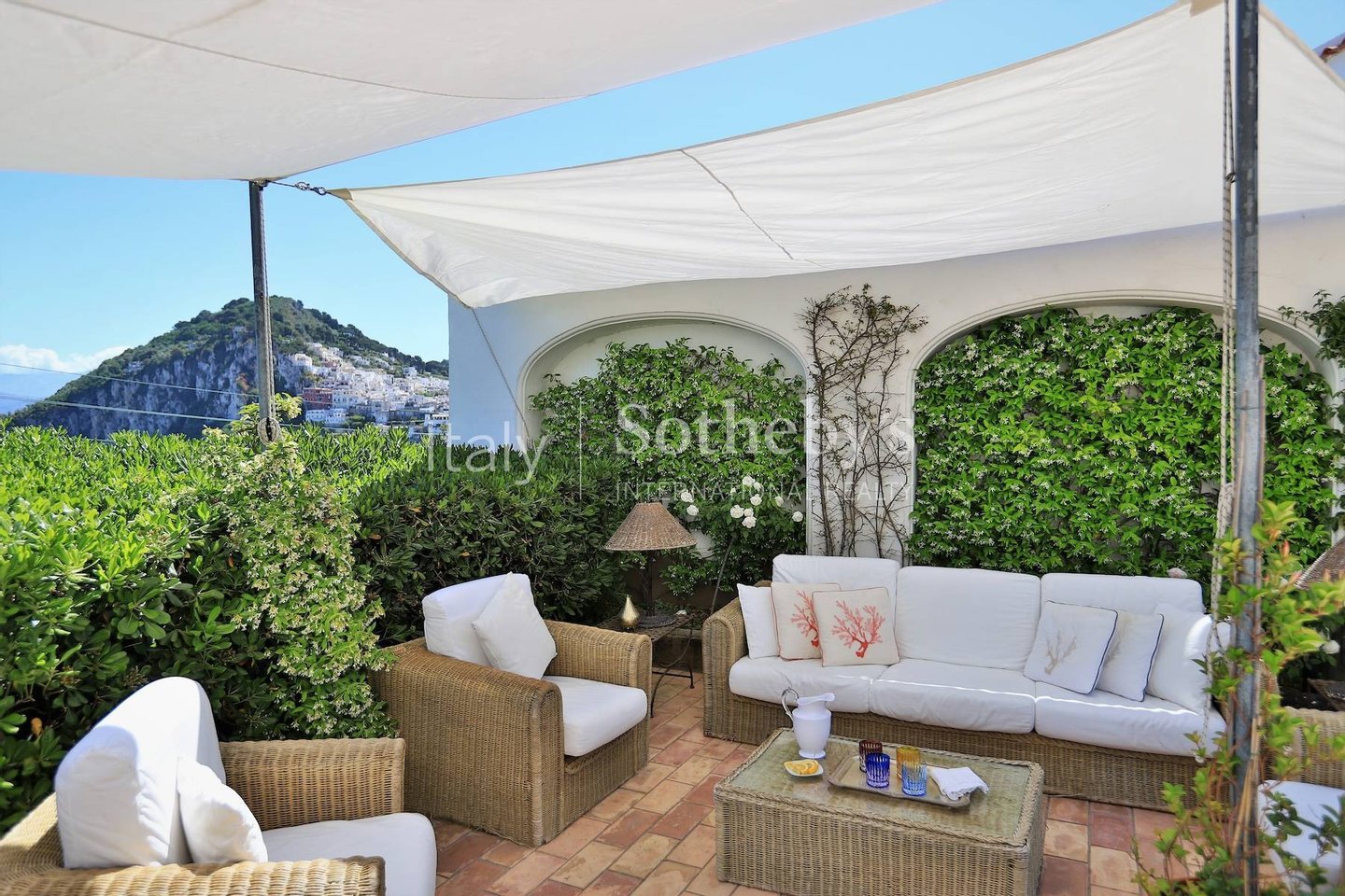 Excellently positioned and equipped with spacious panoramic terraces, it boasts a splendid 360° panorama with views of the center of Capri, the Sorrentine Peninsula, the port, reaching all the way to Mount Vesuvius and part of the Gulf of Naples.