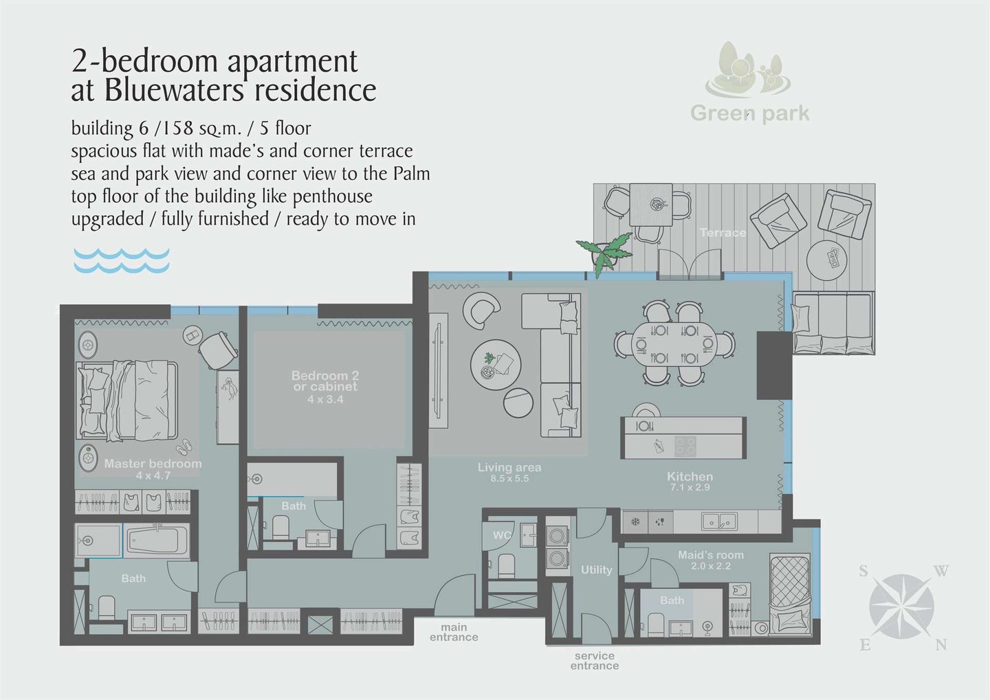 Willkommen in Ihrem komplett möblierten und modernisierten Traumapartment in Bluewaters Residences 6! Dieses stilvolle Apartment verfügt über 3 Schlafzimmer, jedes mit eigenem Badezimmer, sowie ein zusätzliches Dienstmädchenzimmer. Ideal für Paare, Singles, Kapitalanleger und Familien, bietet diese Immobilie den perfekten Rückzugsort inmitten des geschäftigen Stadtlebens. Genießen Sie luxuriöse Annehmlichkeiten und eine erstklassige Lage in einem der begehrtesten Wohnkomplexe der Stadt. Willkommen zu Hause!