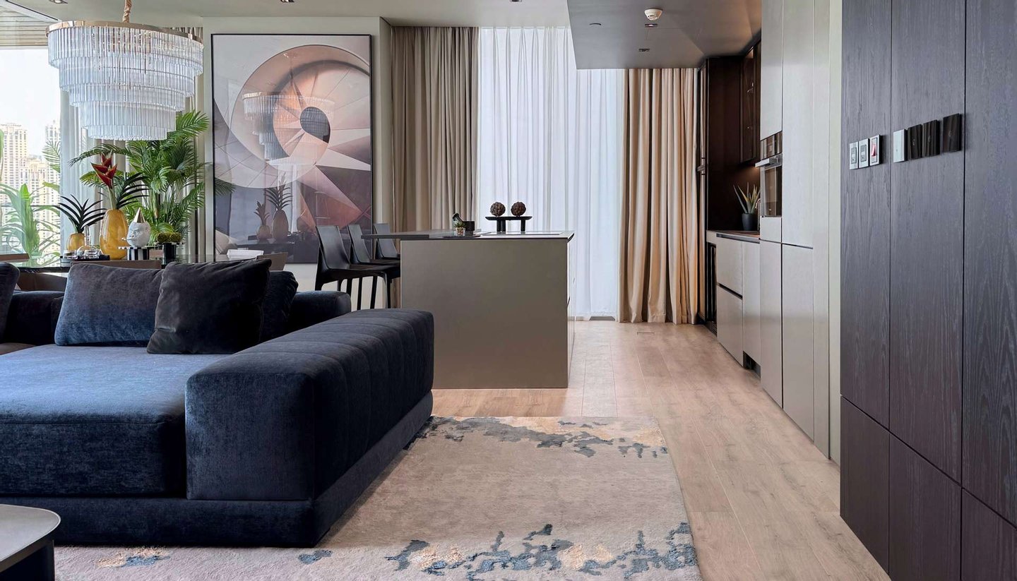 Herzlich willkommen zur Besichtigung der beeindruckenden 3-Zimmer-Hochgeschosswohnung in den Bluewaters Residences 8 auf Bluewaters Island. Betreten Sie die Gemeinschaftsgärten, ein grünes Paradies zum Entspannen und Genießen. Das Fitnessstudio lädt