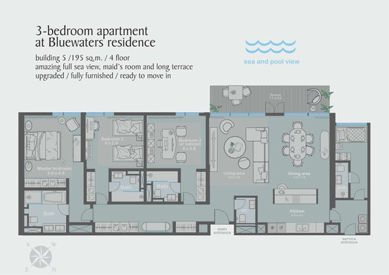 Willkommen in Ihrem neuen Zuhause auf Bluewaters Residences 5. Diese komplett möblierte und modernisierte Wohnung bietet Ihnen eine Premium-Lage mit atemberaubendem Meerblick. Mit insgesamt 5 Schlafzimmern ist genügend Platz für die ganze Familie oder auch für Kapitalanleger, die diese exklusive Immobilie als Investition sehen. Genießen Sie den Luxus und Komfort, den diese Wohnung zu bieten hat, und lassen Sie sich von der einzigartigen Kombination aus modernem Design und traumhafter Umgebung begeistern. Willkommen in Ihrem persönlichen Paradies am Meer.