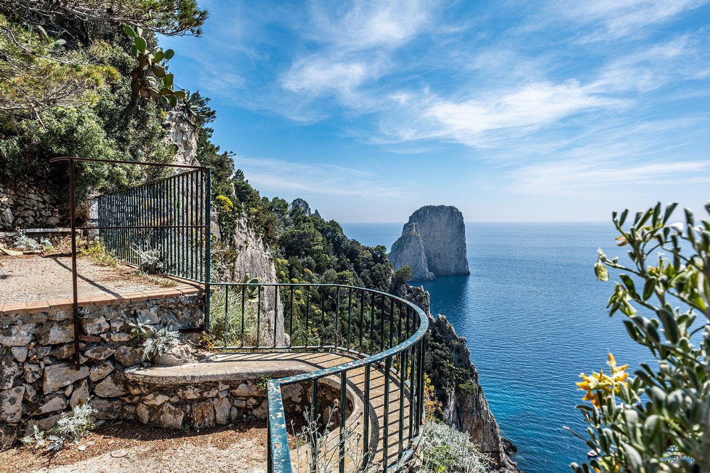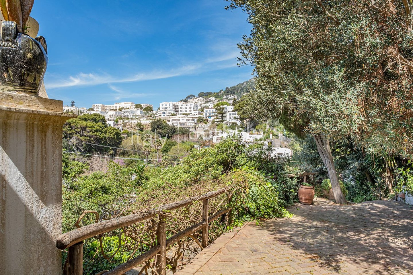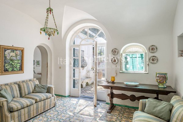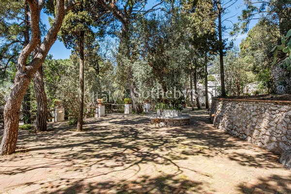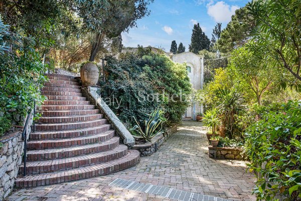 In der bezaubernden Kulisse von Occhio Marino steht diese beeindruckende Villa aus dem späten 19. Jahrhundert. Sie wurde von dem berühmten Architekten Edwin Cerio entworfen, dem fast alle "Traumvillen" von Capri zugeschrieben werden. Das zentral gelegene Anwesen genießt einen doppelten Blick auf Marina Piccola und die Faraglioni, eine Besonderheit, die nur sehr wenige andere Residenzen auf der Insel aufweisen. Die 400 Quadratmeter große Villa erstreckt sich über zwei Ebenen. Der geräumige Wohnbereich zeichnet sich durch Bögen und Gewölbedecken aus, antike Majolika-Fliesen und Wandintarsien scheinen die Zeit angehalten zu haben und den Charme des unverwechselbaren Capri-Stils zu bewahren. Der Schlafbereich besteht aus fünf Schlafzimmern und ebenso vielen Bäder. Der ca. 1.600 Quadratmeter große Außenbereich, der die Villa umgibt, ist perfekt, um die Ruhe und die umgebende Natur zu genießen und endet in einem atemberaubenden Belvedere mit Blick auf die Faraglioni-Felsen. Diese Residenz verkörpert die Essenz von Stil und Tradition der Insel und bietet eine einzigartige Gelegenheit, im malerischen Capri zu leben.