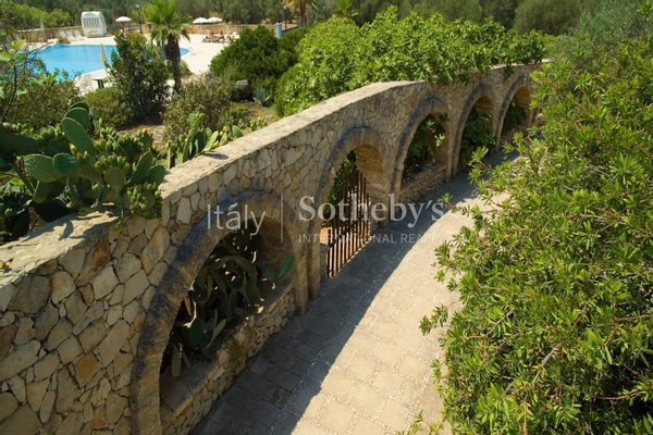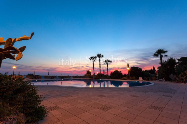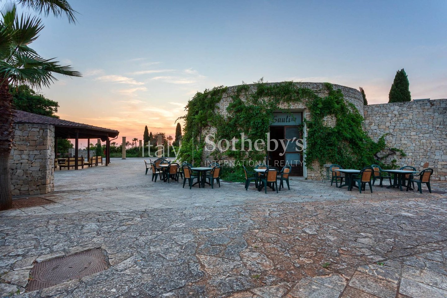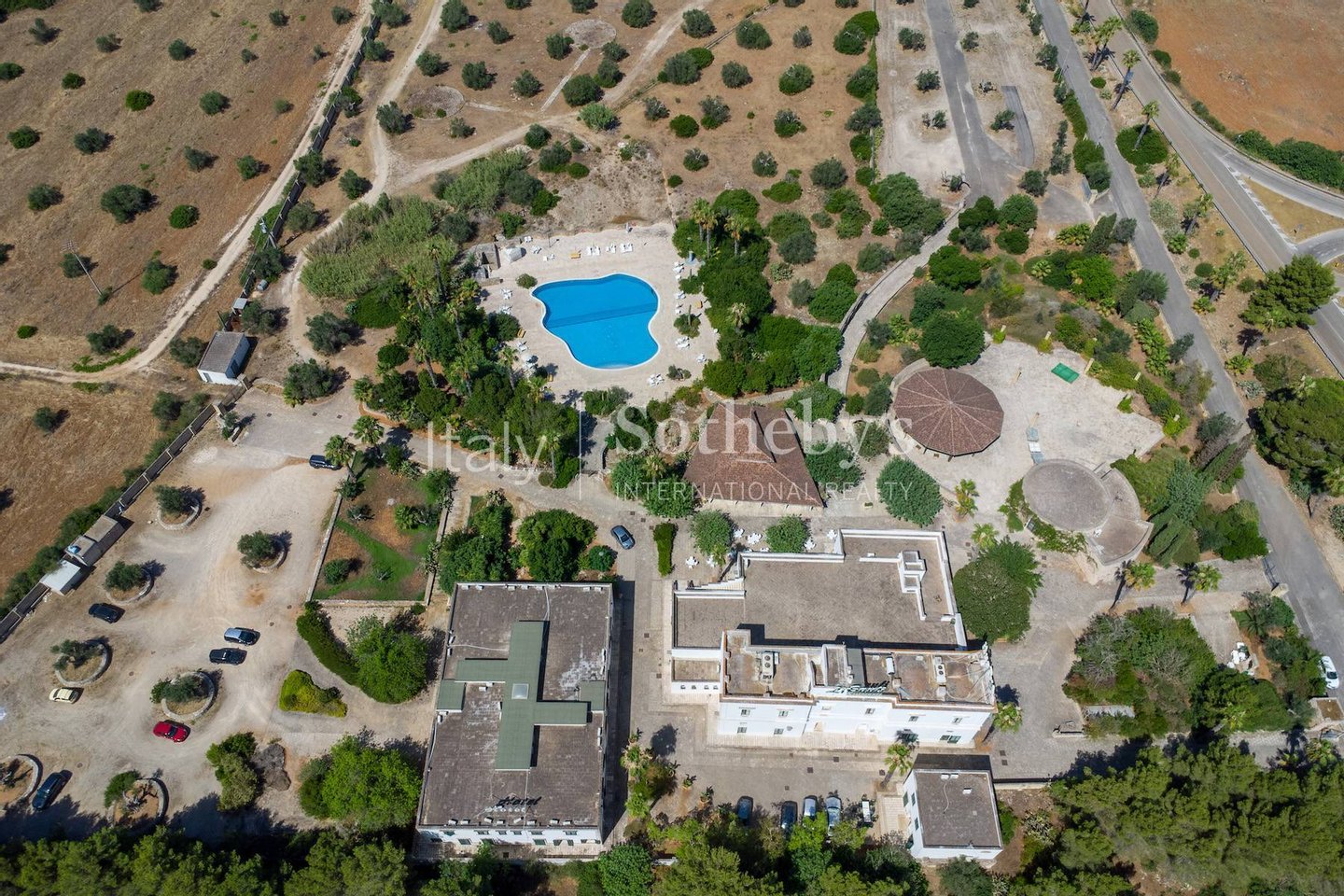 Faszinierende Masseria mit Restaurant, Pool, Sonnenterrasse und Tennisplatz, eingebettet in die mediterrane Vegetation, nur wenige Schritte vom Meer von Gallipoli entfernt. Diese historische und prestigeträchtige Immobilie, gelegen im faszinierendsten Teil von Apulien, umfasst zwei Bauernhäuser und zeichnet sich durch großzügige Freiflächen für Entspannung und Unterhaltung aus, darunter ein großer Pool und ein Tennisplatz. Der 8 Hektar große Park mit Jahrhunderte alten Olivenbäumen und Palmen bietet beeindruckende Landschaften und gepflegte Bereiche. Die Struktur, die sorgfältig restauriert wurde, vereint das Sechzehnte Jahrhundert mit modernem Komfort. Das Hauptgebäude der Masseria erstreckt sich über zwei Etagen: Im Erdgeschoss befinden sich ein Empfangssaal, eine Bar und eine professionelle Küche. Im Obergeschoss befinden sich die Schlafzimmer mit Bädern sowie eine Panoramaterrasse. Ein eleganter Pavillon bietet Platz für Frühstück, Mittag- und Abendessen im Freien. Das zweite Bauernhaus bietet weitere Zimmer, insgesamt 44 auf einer Fläche von 2700 Quadratmetern. Es ist interessant zu beachten, dass die Räumlichkeiten im Erdgeschoss, die derzeit als Waschküche und Lager genutzt werden, in weitere 8 Zimmer mit Bädern umgewandelt werden könnten. Das Herzstück des Anwesens ist der herrliche Poolbereich, umgeben von der Sonnenterrasse und der Natur, der Privatsphäre und Ruhe bietet. Der Park mit Joggingwegen ermöglicht es, die Schönheit des Salento zu erkunden, während ein umgebauter Steinschuppen, der als Bar dient, und ein Pavillon die Atmosphäre für Freizeit und private Veranstaltungen abrunden.