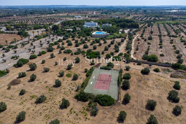 Faszinierende Masseria mit Restaurant, Pool, Sonnenterrasse und Tennisplatz, eingebettet in die mediterrane Vegetation, nur wenige Schritte vom Meer von Gallipoli entfernt. Diese historische und prestigeträchtige Immobilie, gelegen im faszinierendsten Teil von Apulien, umfasst zwei Bauernhäuser und zeichnet sich durch großzügige Freiflächen für Entspannung und Unterhaltung aus, darunter ein großer Pool und ein Tennisplatz. Der 8 Hektar große Park mit Jahrhunderte alten Olivenbäumen und Palmen bietet beeindruckende Landschaften und gepflegte Bereiche. Die Struktur, die sorgfältig restauriert wurde, vereint das Sechzehnte Jahrhundert mit modernem Komfort. Das Hauptgebäude der Masseria erstreckt sich über zwei Etagen: Im Erdgeschoss befinden sich ein Empfangssaal, eine Bar und eine professionelle Küche. Im Obergeschoss befinden sich die Schlafzimmer mit Bädern sowie eine Panoramaterrasse. Ein eleganter Pavillon bietet Platz für Frühstück, Mittag- und Abendessen im Freien. Das zweite Bauernhaus bietet weitere Zimmer, insgesamt 44 auf einer Fläche von 2700 Quadratmetern. Es ist interessant zu beachten, dass die Räumlichkeiten im Erdgeschoss, die derzeit als Waschküche und Lager genutzt werden, in weitere 8 Zimmer mit Bädern umgewandelt werden könnten. Das Herzstück des Anwesens ist der herrliche Poolbereich, umgeben von der Sonnenterrasse und der Natur, der Privatsphäre und Ruhe bietet. Der Park mit Joggingwegen ermöglicht es, die Schönheit des Salento zu erkunden, während ein umgebauter Steinschuppen, der als Bar dient, und ein Pavillon die Atmosphäre für Freizeit und private Veranstaltungen abrunden.