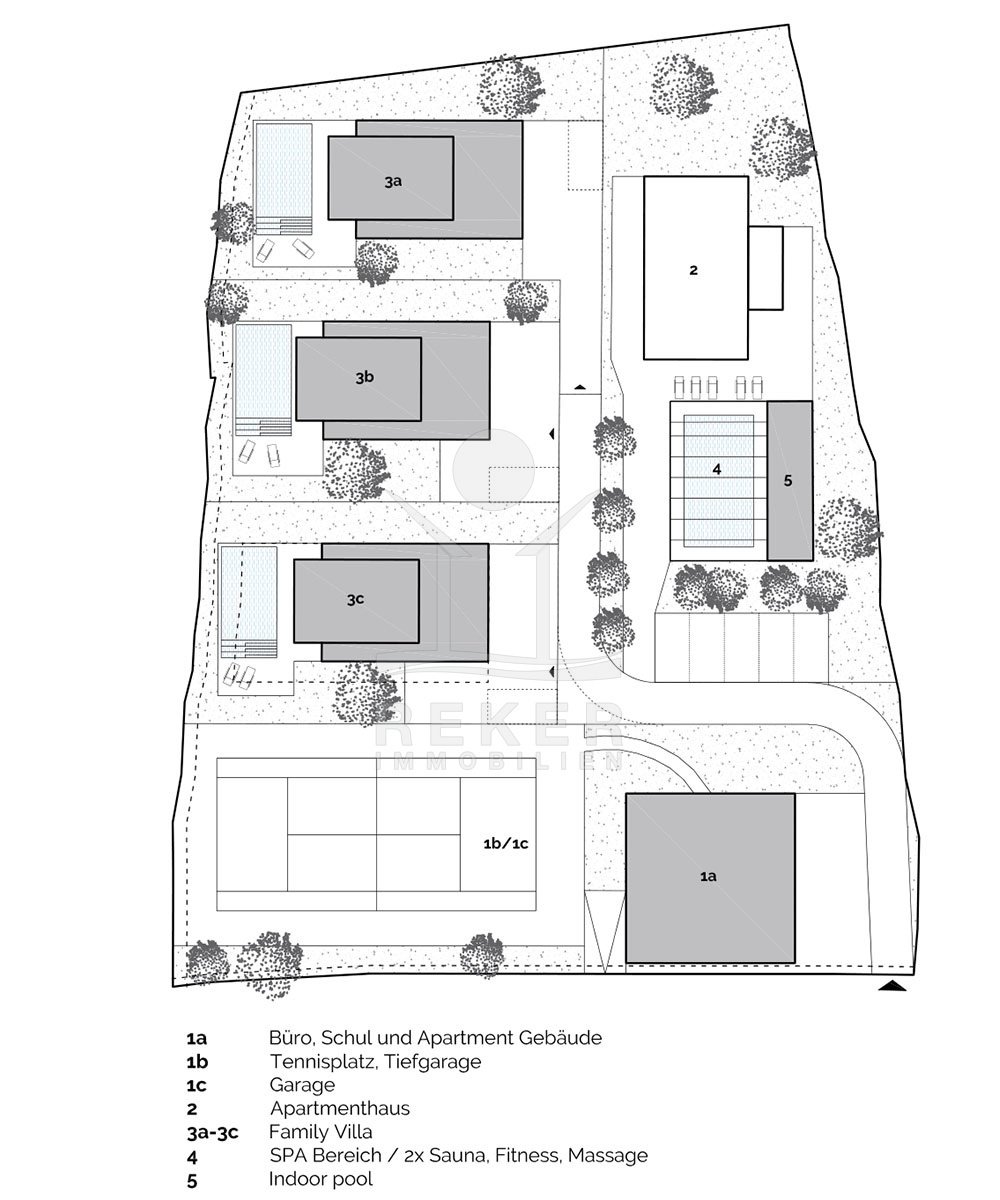 Diese Luxusvilla ist Teil eines exklusiven Komplexes, der neben 6 Villen auch ein Verwaltungsgebäude und ein Apartmenthaus mit 5 Apartments umfasst. Gönnen Sie sich das Privileg, Ihren eigenen privaten Pool zu besitzen und profitieren Sie von den erstklassigen gemeinschaftlichen Annehmlichkeiten wie einem Sport- und Spa-Resort mit Tennisplatz, ganzjährig nutzbarem Innenpool und einer Sauna. Jedes Detail dieser Villa wurde mit größter Sorgfalt gestaltet, um Ihnen ein unvergleichliches Wohn- und Urlaubserlebnis zu bieten. Dank der Nähe zu Großstädten und einem ganzjährigen Angebot können Sie hier sorgenfrei leben und unvergessliche Momente erleben. Willkommen in Ihrem neuen Paradies, wo Alltagssorgen in Luxus und Komfort verschwinden und das Gefühl eines endlosen Sommers niemals endet.