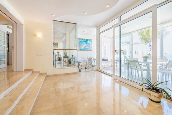 Sobald Sie die Villa betreten, begrüßt Sie der üppige Meerblick in Ihrem neuen Zuhause. Der Innenraum ist im mediterranen Stil mit hochwertiger Ausstattung gestaltet. Die Marmorböden und die warmen Innenschreinereiarbeiten aus Holz verleihen ihm einen Hauch von Raffinesse und das „Etwas Besonderes“.