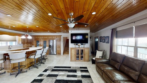 In dem Moment, in dem man das Gelände von ---The Lookout--- betritt, fühlt man sich wie zu Hause. Die überdachte Veranda ist der perfekte Ort, um in der Schaukel abzuhängen, während Sie Ihren Morgenkaffee genießen. Die Innenaufteilung ist ein familienfreundliches, offenes Konzept mit einem luftigen Wohn-/Essbereich und einem neu renovierten Küchenbereich. Die geräumige Küche verfügt über jede Menge Stauraum, darunter eine Speisekammer, Massivholzschränke und Granitarbeitsplatten. Die untere Ebene verfügt über ein Schlafzimmer, ein Badezimmer, ein Spielzimmer und eine Waschküche. Die zweite Ebene verfügt über ein Hauptbett und ein Bad, ein Gästebett, ein Bad und ein zusätzliches Zimmer, ideal für ein Heimbüro oder Schlafzimmer. Alles ist in tadellosem Zustand, da das Haus sehr gut gepflegt wurde. Fenstertüren vom Essbereich öffnen sich auf eine überdachte Veranda, die zu einem oberirdischen Swimmingpool und einem Terrassenbereich führt, um lange Sommertage im Freien zu genießen. Eine extra große Garage bietet Platz für bis zu drei Autos mit Platz für Ihre Strandausrüstung. Für die Familie, die gerne angelt, taucht und die Inseln erkundet, wird The Lookout zusammen mit einer 35--- breiten und 75--- tiefen Hafenparzelle zum Anlegen Ihres Bootes verkauft.
