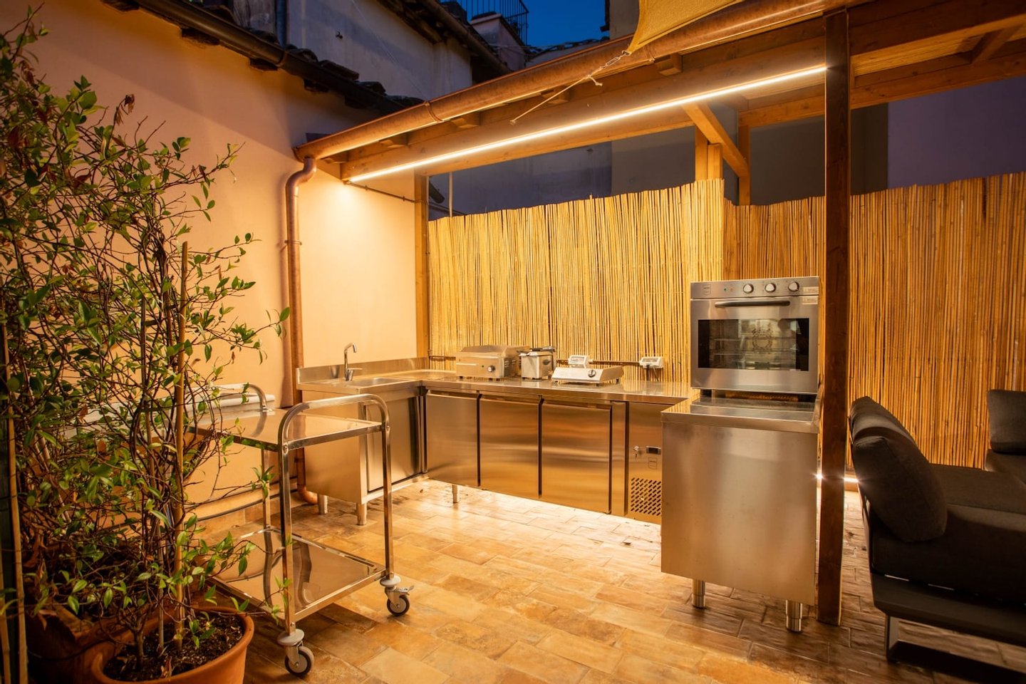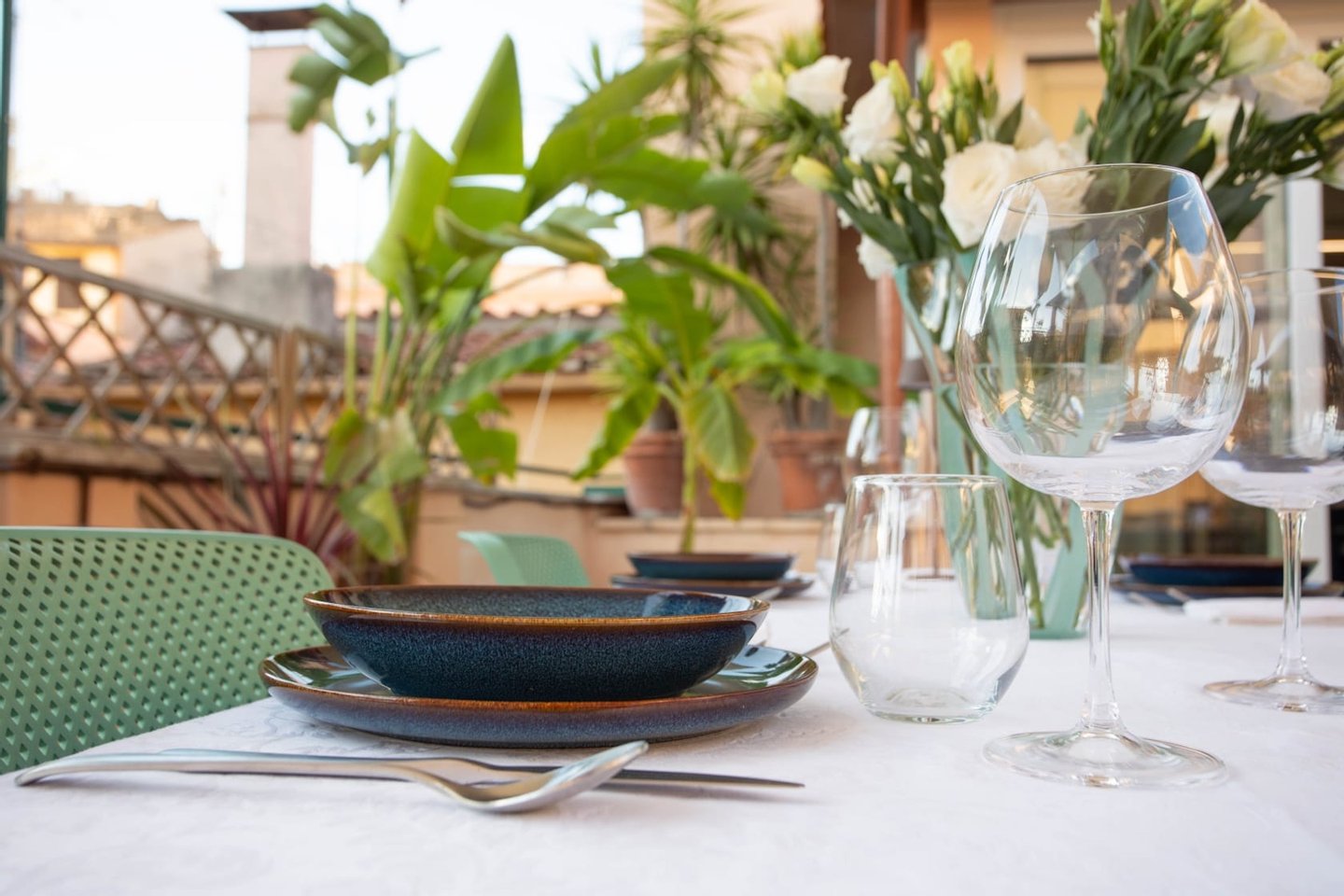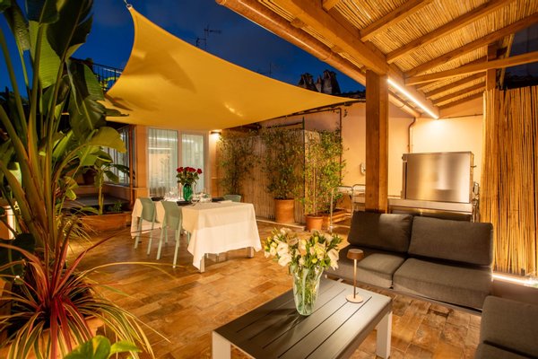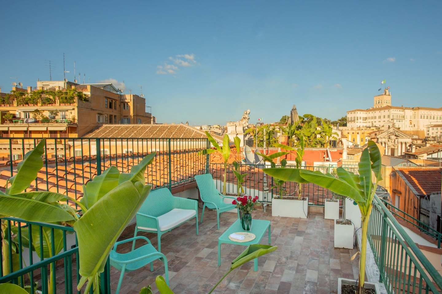 The upper terrace offers a magnificent view of the rooftops of Rome and the Quirinale Palace, the residence of the President of the Italian Republic. This terrace is perfect as a sunbathing area, with comfortable sun chairs, offering the ideal environment for a lively breakfast or a drink under the stars, in every season of the year.