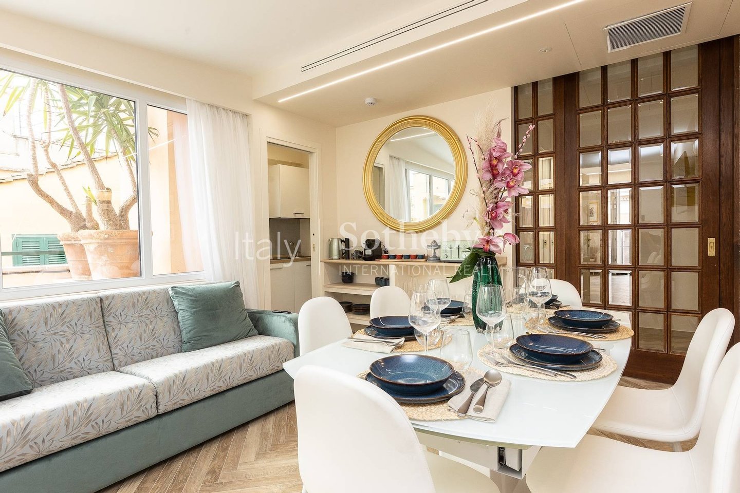 The apartment is furnished with the elegance of contemporary Italian design, a true reference for lovers of Italian style.