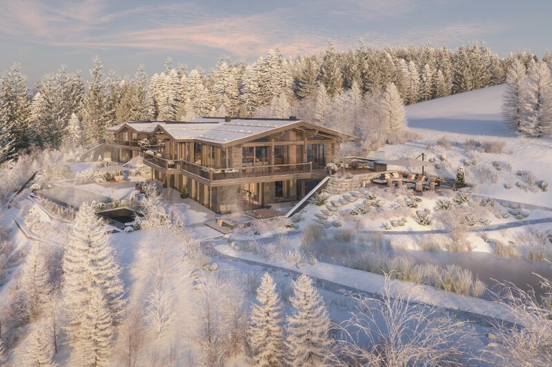 Das Anwesen steht am Ende einer privaten Zufahrtsstraße und ist derzeit im Bau befindlich. Unübertroffen in Exklusivität und Größe, einer architektonischen Symbiose aus Tradition und Moderne, der Qualität der Materialien und der Liebe zum Detail in der Ausstattung, wird das Anwesen seinen zukünftigen Besitzern ein einzigartiges Wohnerlebnis in den Bergen bieten. Geschützt durch einen kleinen Wald im Norden ist es von morgens bis abends sonnendurchflutet.