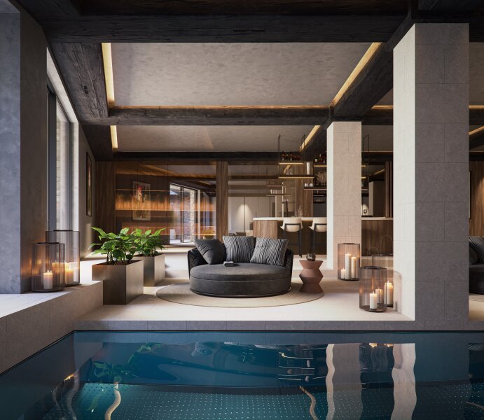Ihr erster Blick am Morgen gilt dem Berghang auf der anderen Talseite und dem Wilden Kaiser zu Ihrer Rechten. Außergewöhnliche Details, alle erdenklichen Annehmlichkeiten und luxuriöse Ausstattungen ergänzen die unglaubliche Kulisse perfekt.