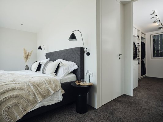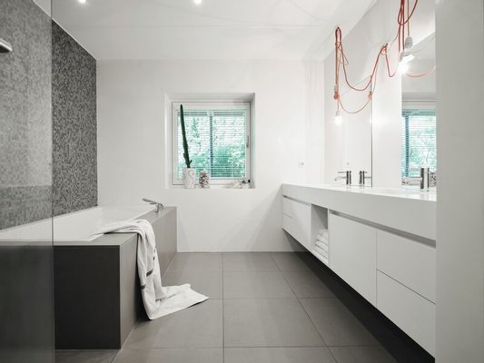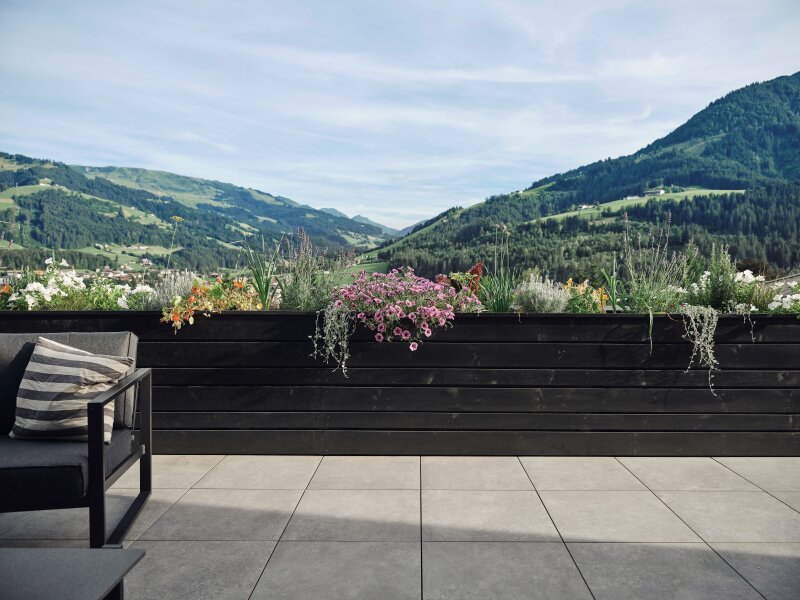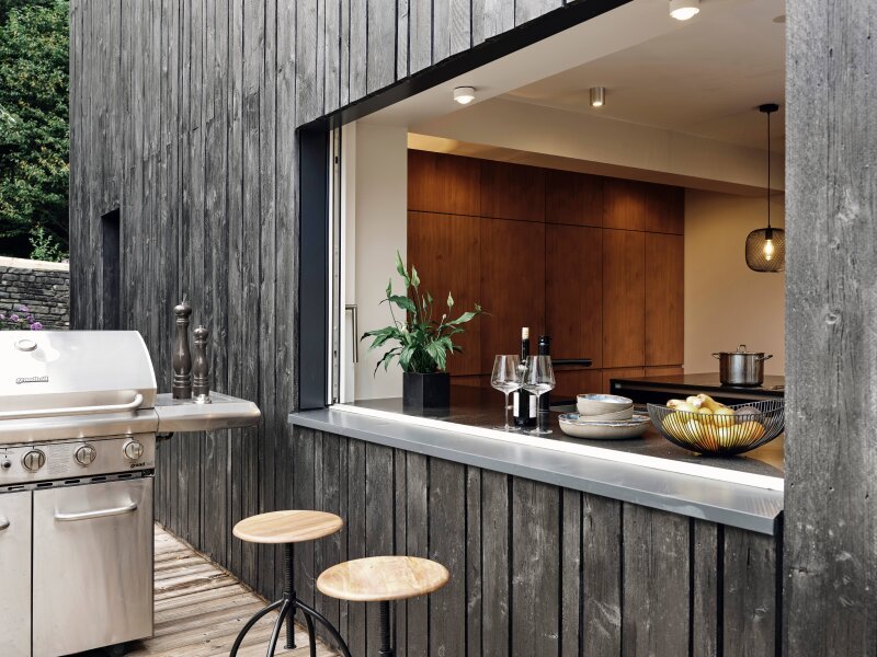 Das Raumkonzept ist klar strukturiert mit perfekten Blickachsen, die verwendeten Materialien sind wertig mit neutralen Farben, sodass man den persönlichen Geschmack als individuelle Ergänzung wunderbar einbringen kann. Genial durchdacht ist auch breite Schiebefenster der Küche, das den davor platzierten BBQ-Platz im Handling unterstützt.