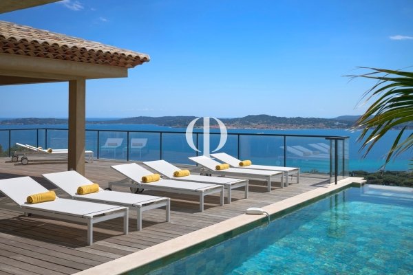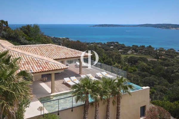 Unique in Grimaud, exceptional villa offering one of the most beautiful sea views in the Gulf of Saint-Tropez. Out of sight, this 350 m² property rests on a 2212 m² green park overlooking the bay of Saint-Tropez. The villa houses a large living room extended by a large terrace with an infinity pool offering a breathtaking sea view. A pleasant covered terrace for lunch by the swimming pool, a flat garden with Mediterranean scents and its numerous relaxation areas with different atmospheres will allow you to enjoy sunny days by the sea. The villa has five bedrooms arranged in suites overlooking the the sea, each with private bathrooms and dressing rooms. Among its luxurious services, you will find: wine cellar, fitness room, cinema room, equipped laundry room, 85 m² garage and large outdoor parking space. A true haven of tranquility in the heart of the Gulf of Saint-Tropez.