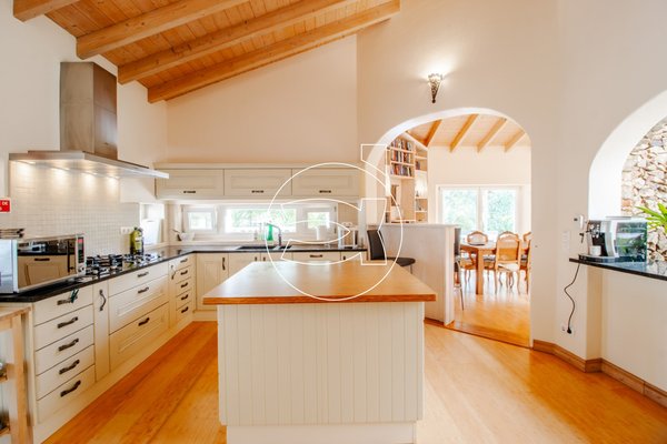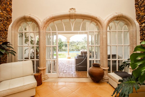 Wenn Sie die Hauptvilla betreten, kommen Sie durch eine einladende Eingangshalle und ein atemberaubendes Atrium, dass den Wohn-/Essbereich und eine großzügige, voll ausgestattete Küche mit direktem Zugang zum Garten sowie dem einladenden Poolbereich verbindet.