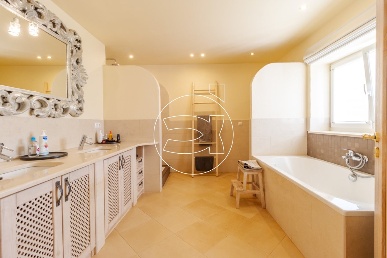 Diese Residenz bietet vier großzügige Schlafzimmer, jedes mit eigenem Eingang, eigenem Bad und begehbarem Kleiderschrank, mit Zugang zum Garten von den Suiten im Erdgeschoss sowie einem atemberaubenden Blick auf die Natur von den Balkonen.