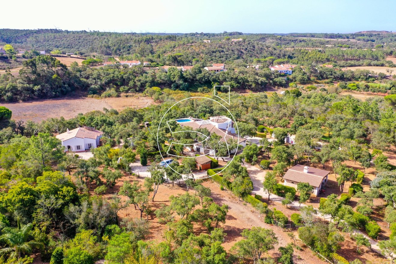 Dieses Anwesen besteht aus 3 Grundstücken mit insgesamt 25.250 m2, vollständig eingezäunt, bestehend aus einer Villa mit 4+1 Schlafzimmern, einer Villa mit 3 Schlafzimmern, einem beheizten Pool, einem Stall sowie verschiedenen Korkeichen.