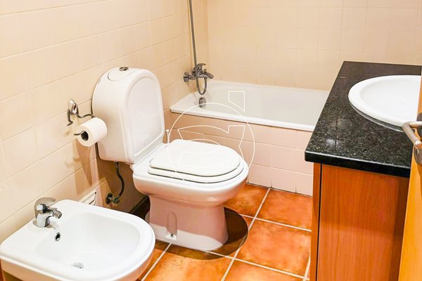 Beim Betreten werden Sie auf der linken Seite von einem großen Schlafzimmer begrüßt, welches eine ruhige Atmosphäre ausstrahlt und einen friedlichen Rückzugsort für Erholung und Entspannung bietet. Daneben befindet sich ein Badezimmer mit Badewanne.