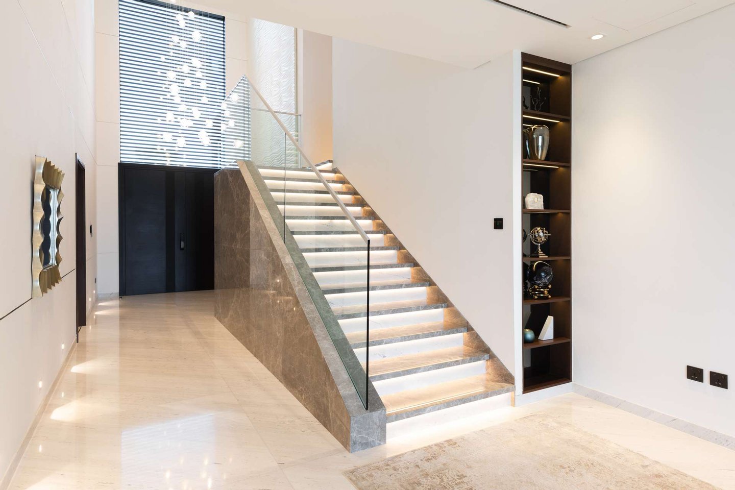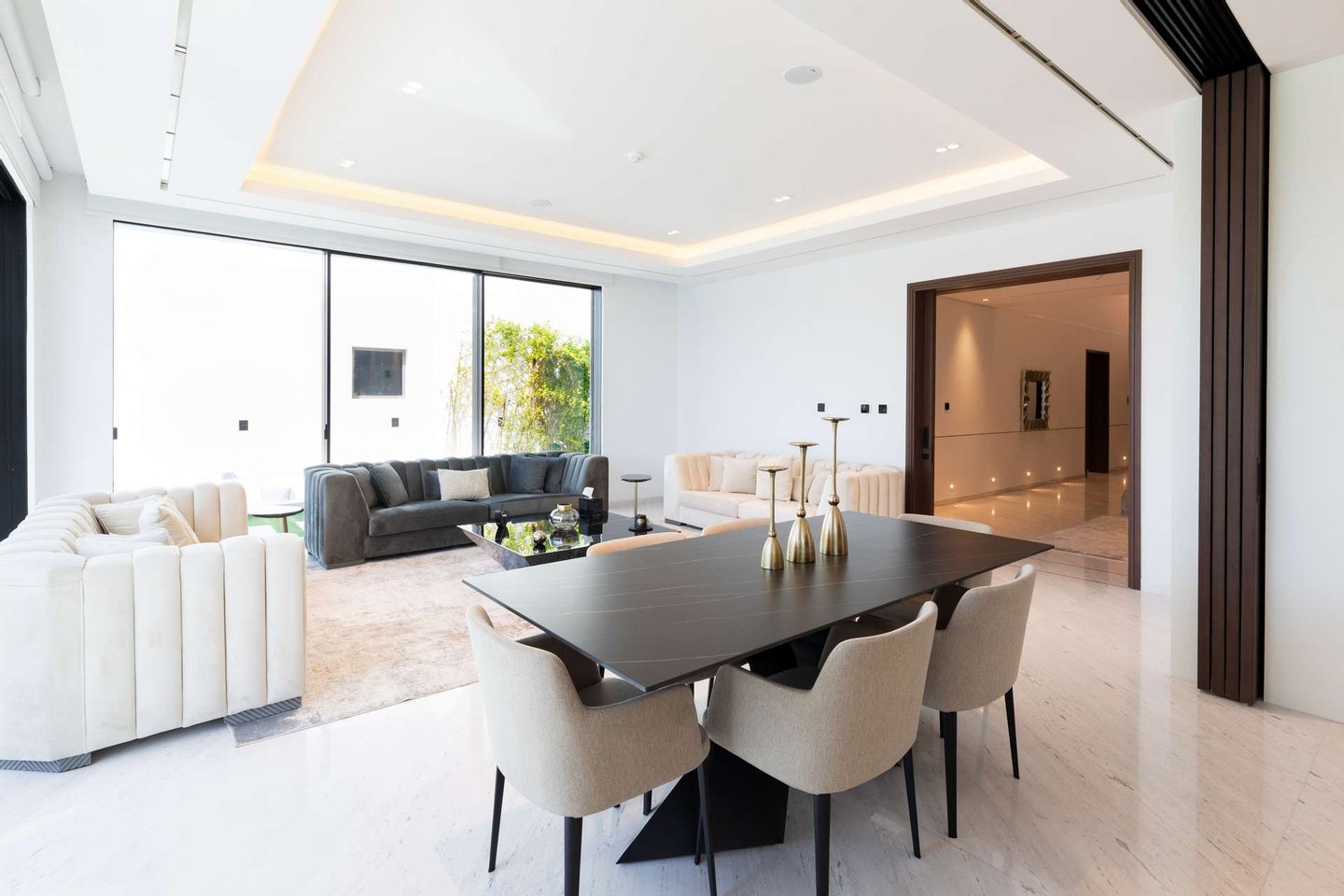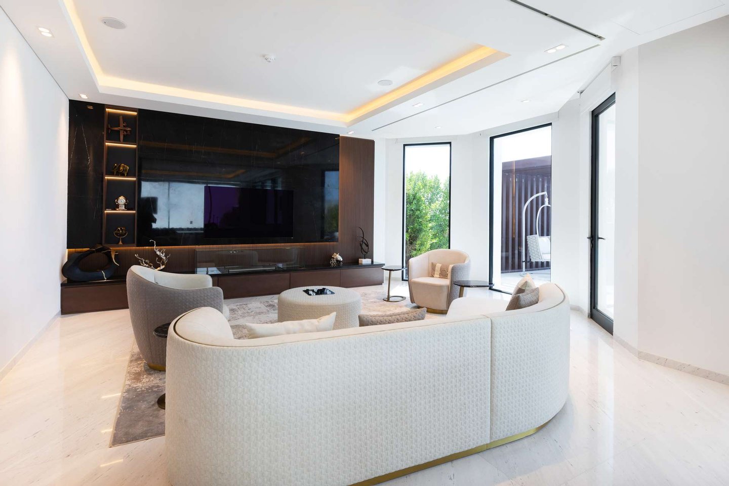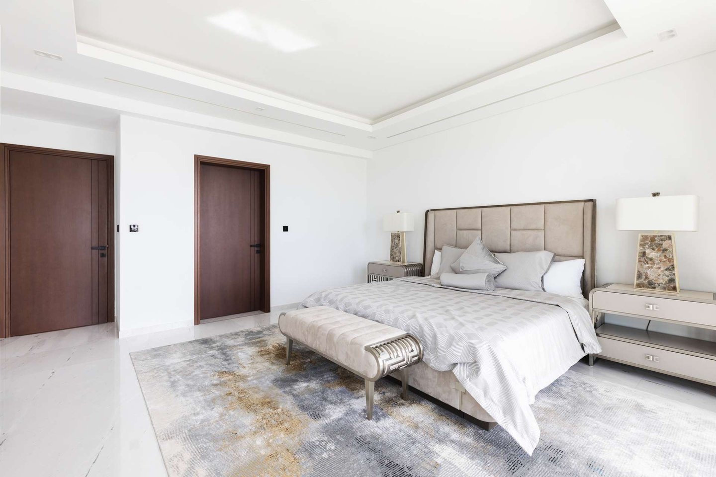 Mit insgesamt 7 geräumigen Schlafzimmern stellt diese Villa den perfekten Ort dar, um Ihren Traum vom eleganten Wohnen in einer exklusiven Umgebung wahr werden zu lassen. Genießen Sie die Ruhe und Privatsphäre, die Ihnen dieses Anwesen bietet, während Sie den atemberaubenden Blick auf das Meer und die Skyline von Dubai bewundern.