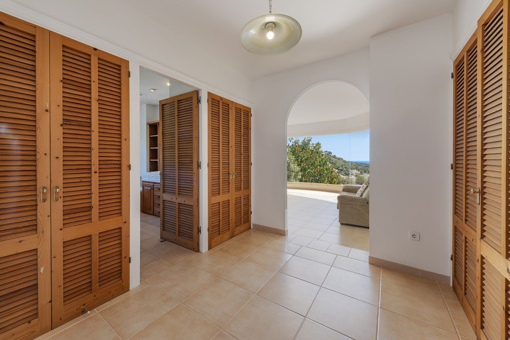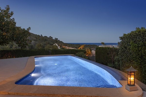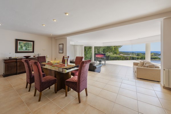 Zu den weiteren Merkmalen gehören ein pflegeleichter Garten mit großzügigem Infinity-Pool, großzügige Terrassen, darunter eine mit Meerblick und eine mit Bergblick, eine große Garage, Abstellraum, Klimaanlage, Zentralheizung und Einbauschränke.