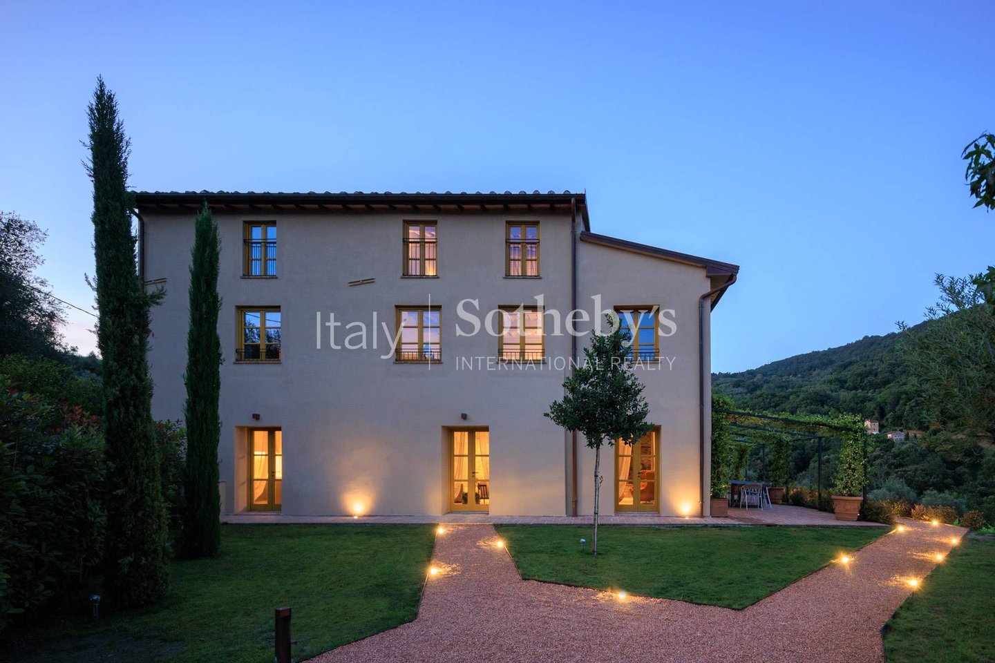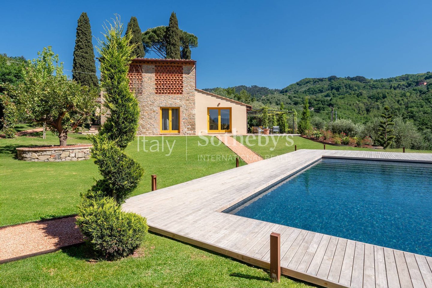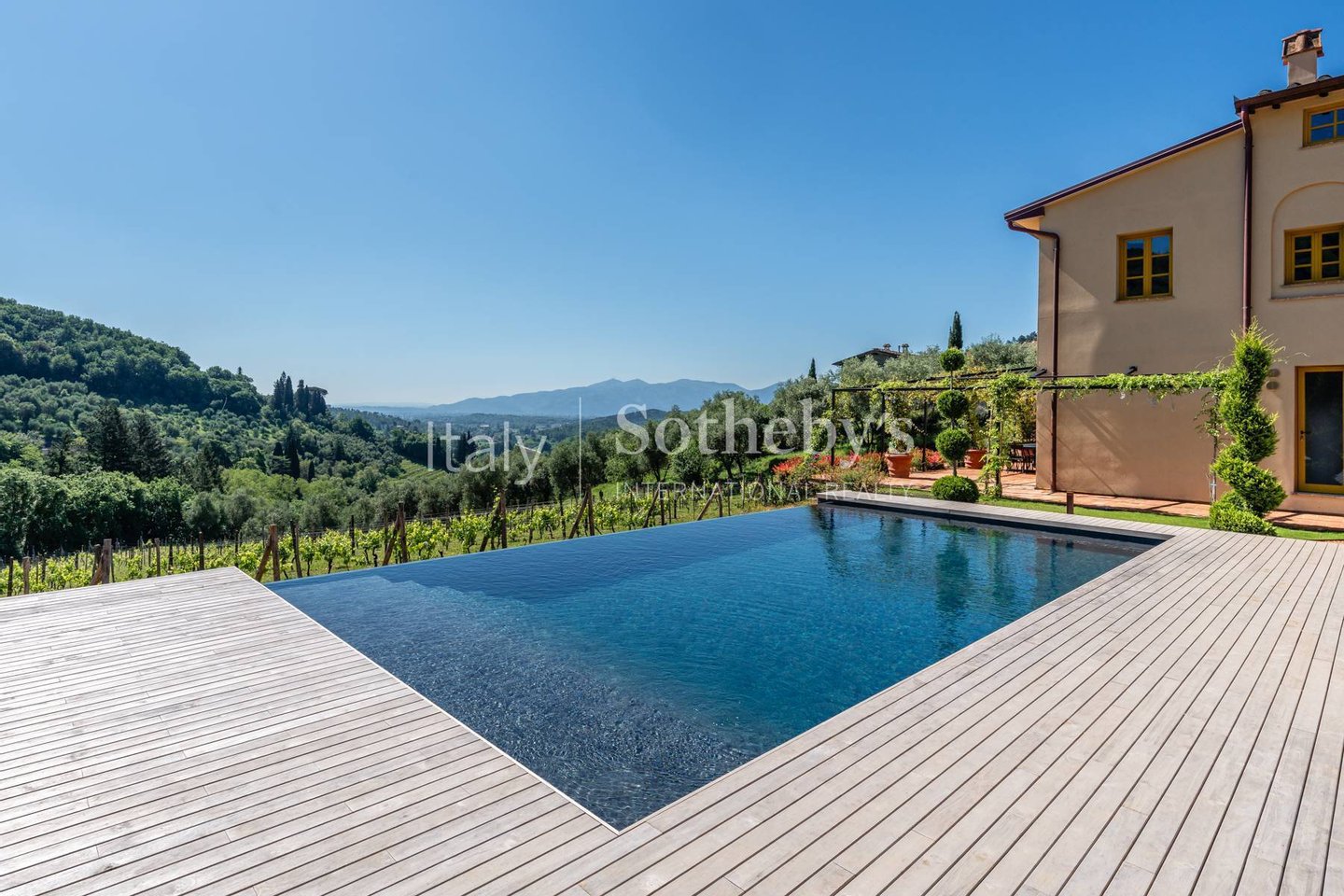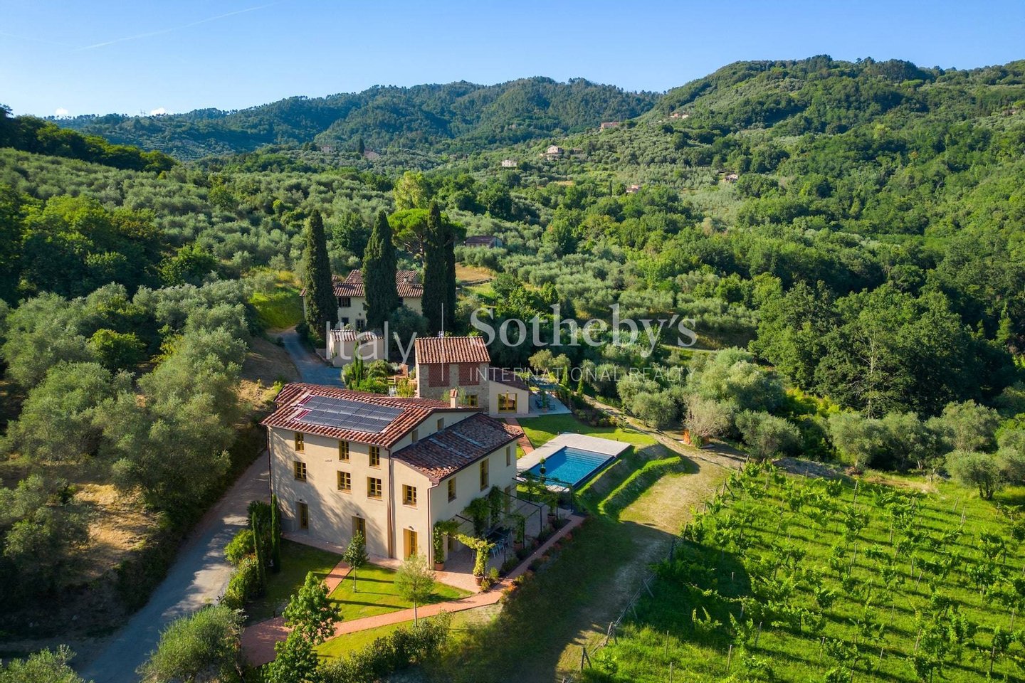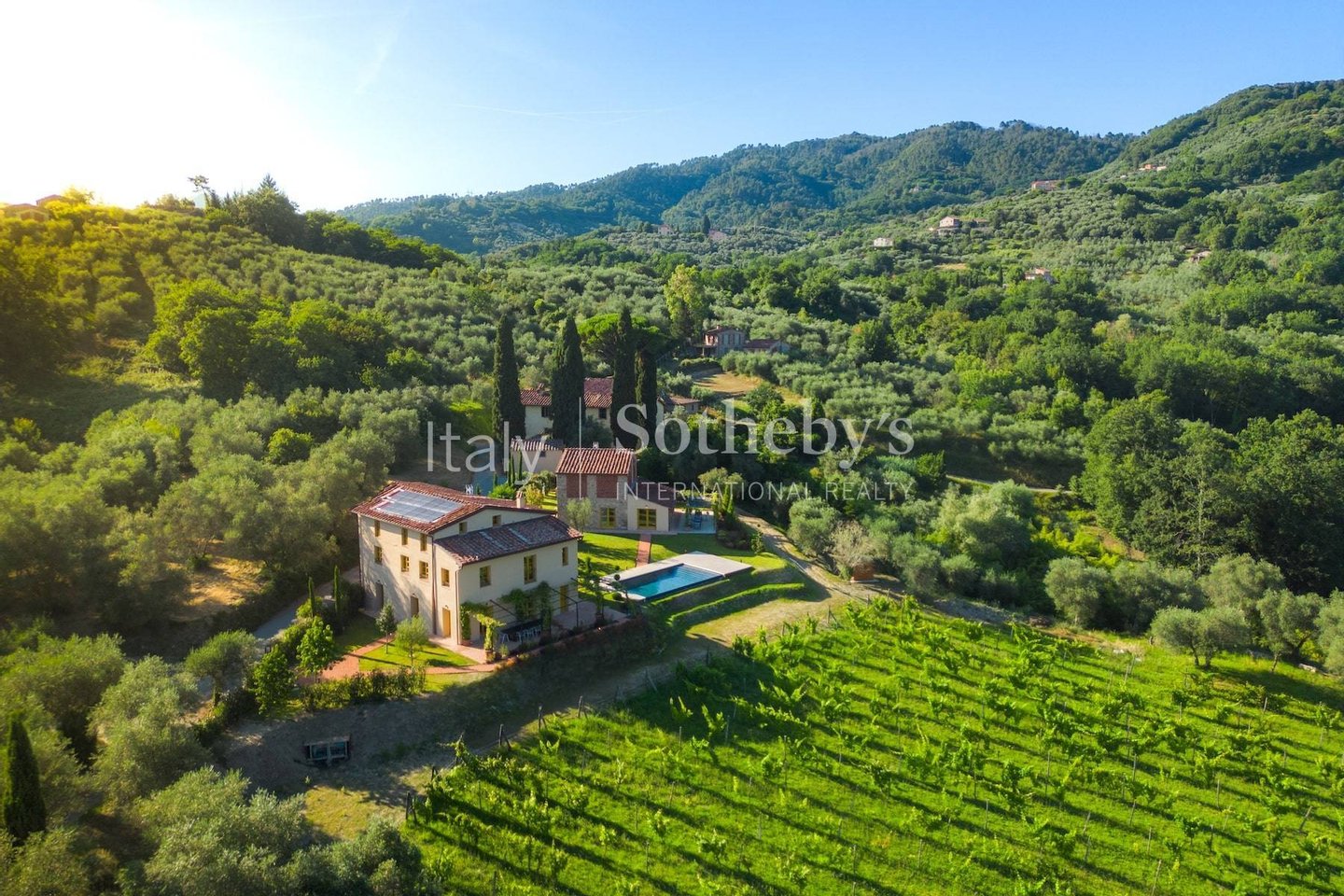 Bezaubernde Residenz, ein verborgenes Juwel unter den renommierten Hügeln von Lucca, umgeben von Olivenhainen und Weinbergen, die eine zeitlose Landschaft zeichnen.