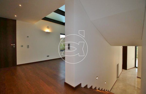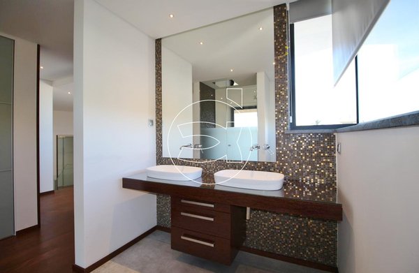 Im Erdgeschoss befinden sich ein viertes Schlafzimmer en suite, ein Fitnessraum, eine Sauna und eine Dusche, ein Kino- / Fernsehraum, eine Wäscherei, eine Doppelgarage sowie zwei technische Räume.