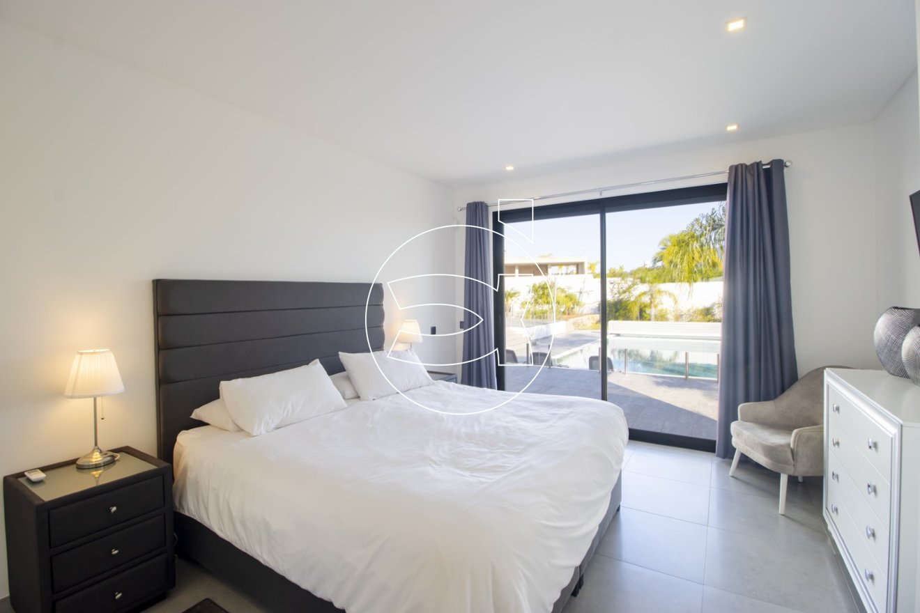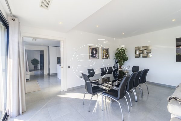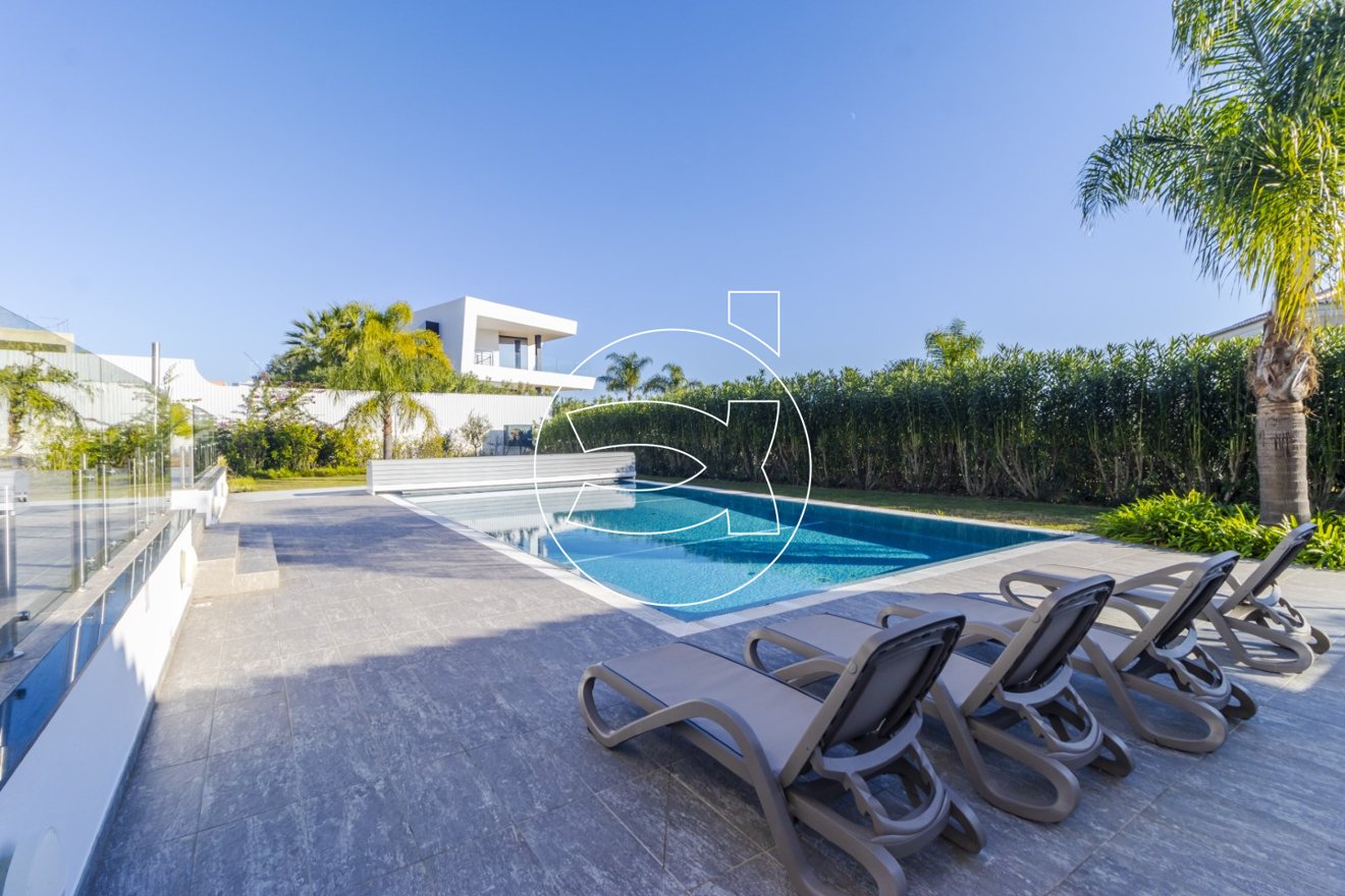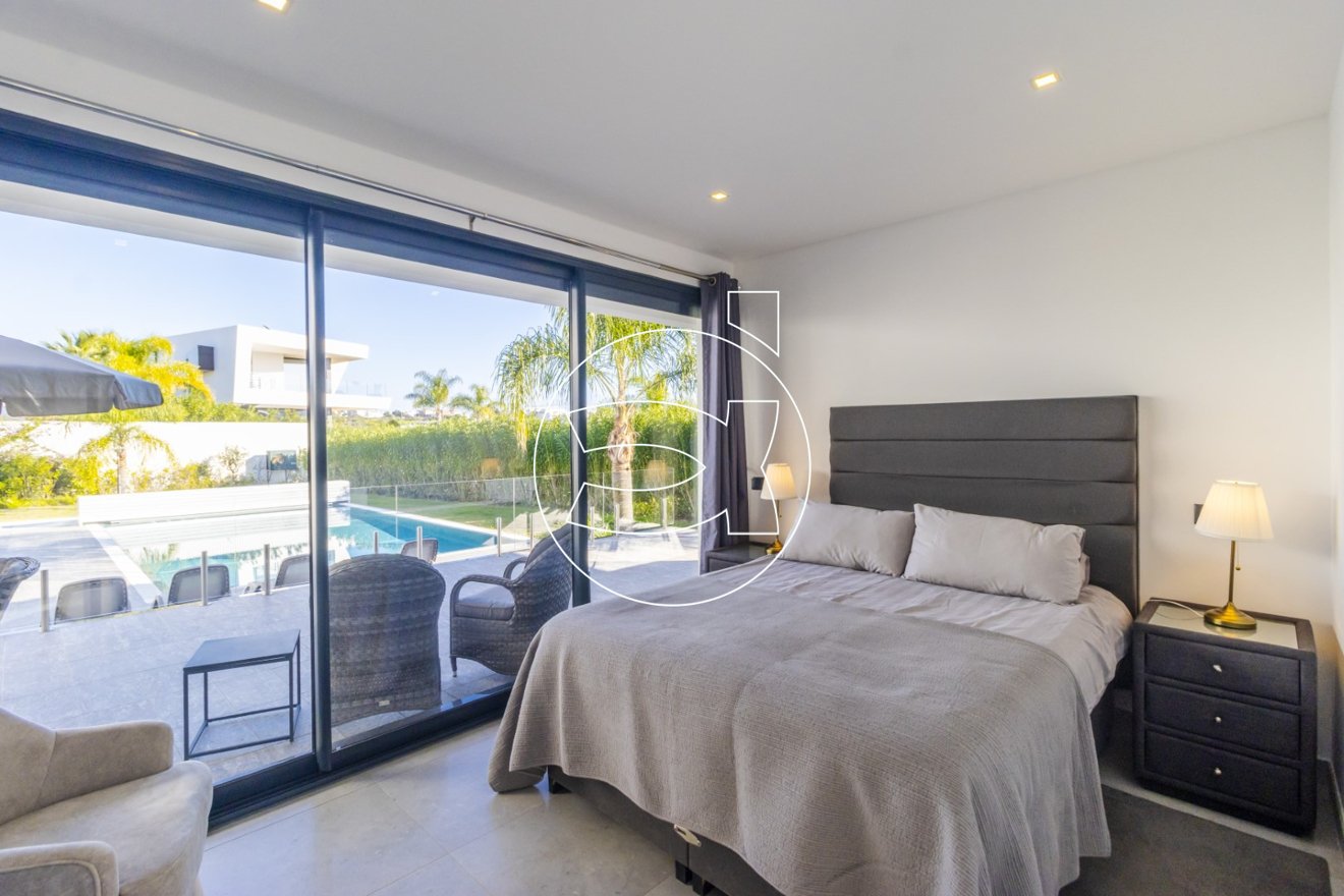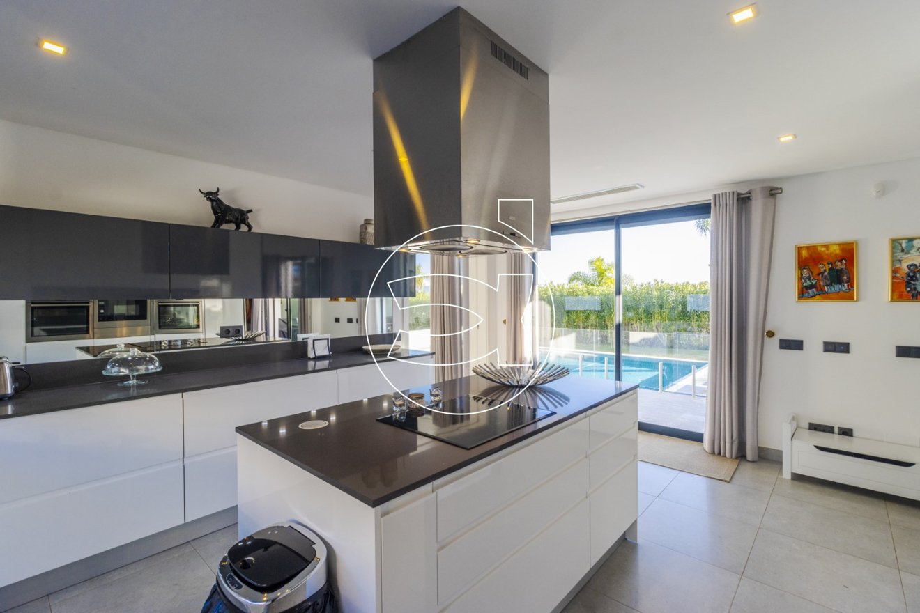 Beim Betreten des Anwesens werden Sie von einer geräumigen und einladenden Halle begrüßt, die zu der voll ausgestatteten Küche mit stilvoller Insel führt, welche in den offenen Wohnbereich übergeht. Vom Boden bis zur Decke reichende Fenster bieten Zugang zur Terrasse und zum Poolbereich.