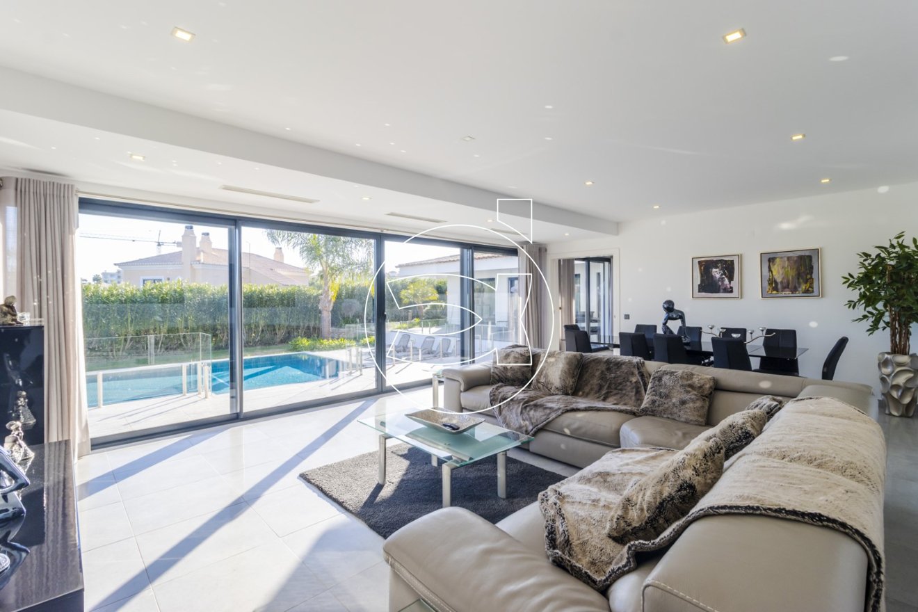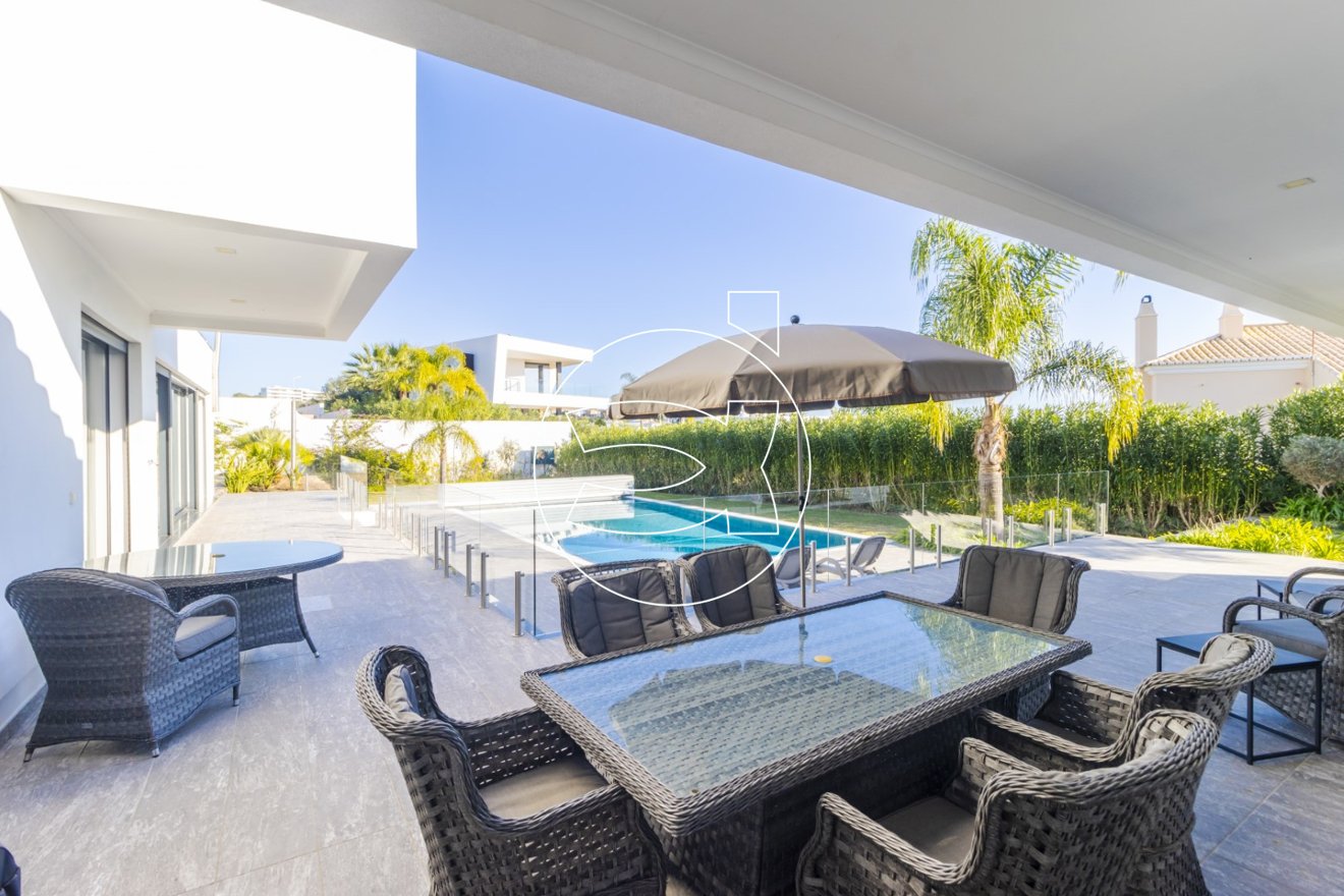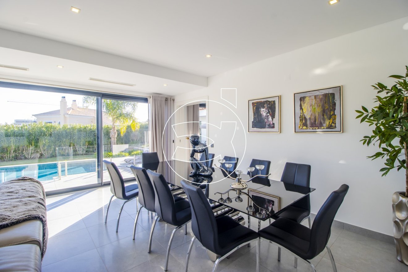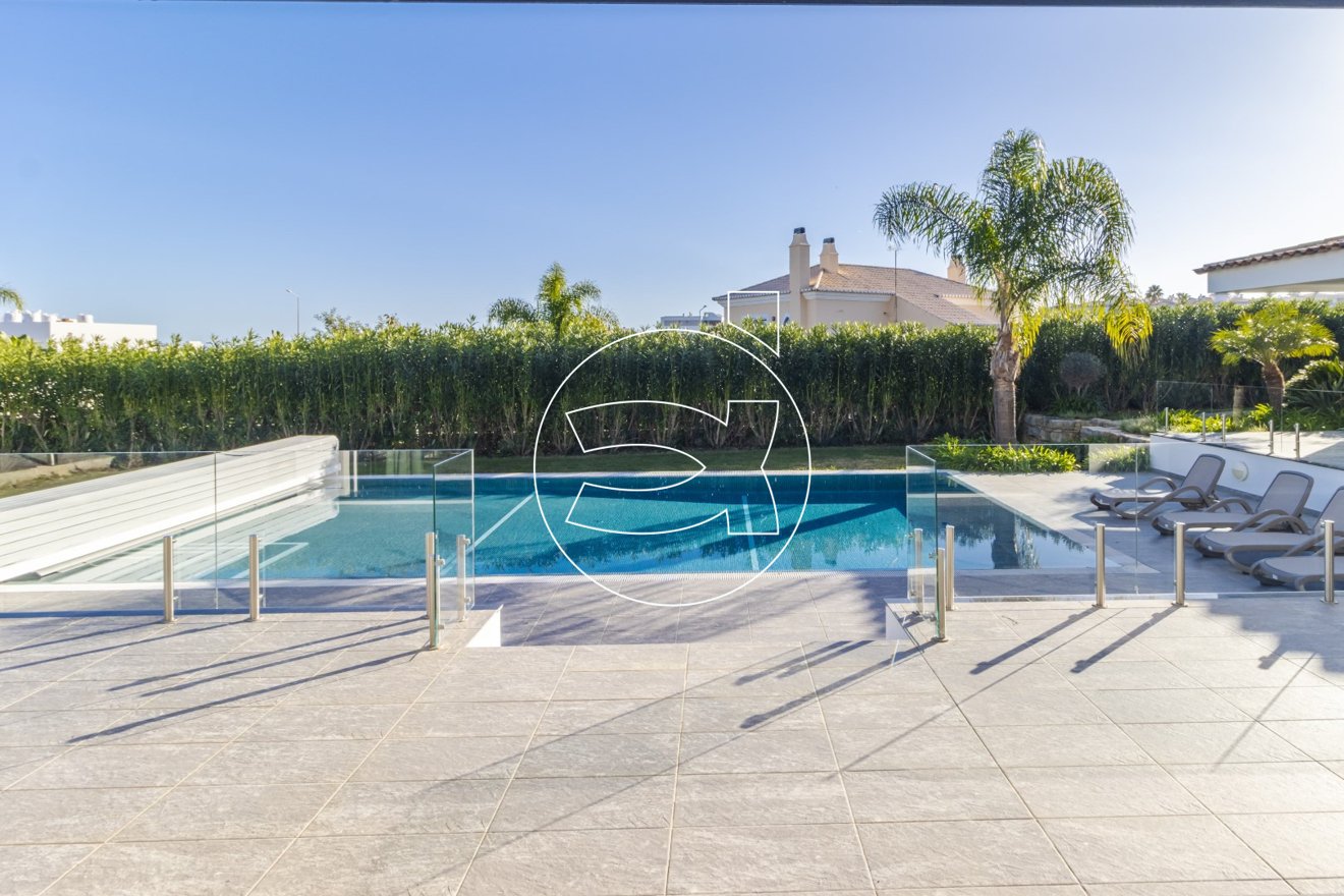 Beim Betreten des Anwesens werden Sie von einer geräumigen und einladenden Halle begrüßt, die zu der voll ausgestatteten Küche mit stilvoller Insel führt, welche in den offenen Wohnbereich übergeht. Vom Boden bis zur Decke reichende Fenster bieten Zugang zur Terrasse und zum Poolbereich.