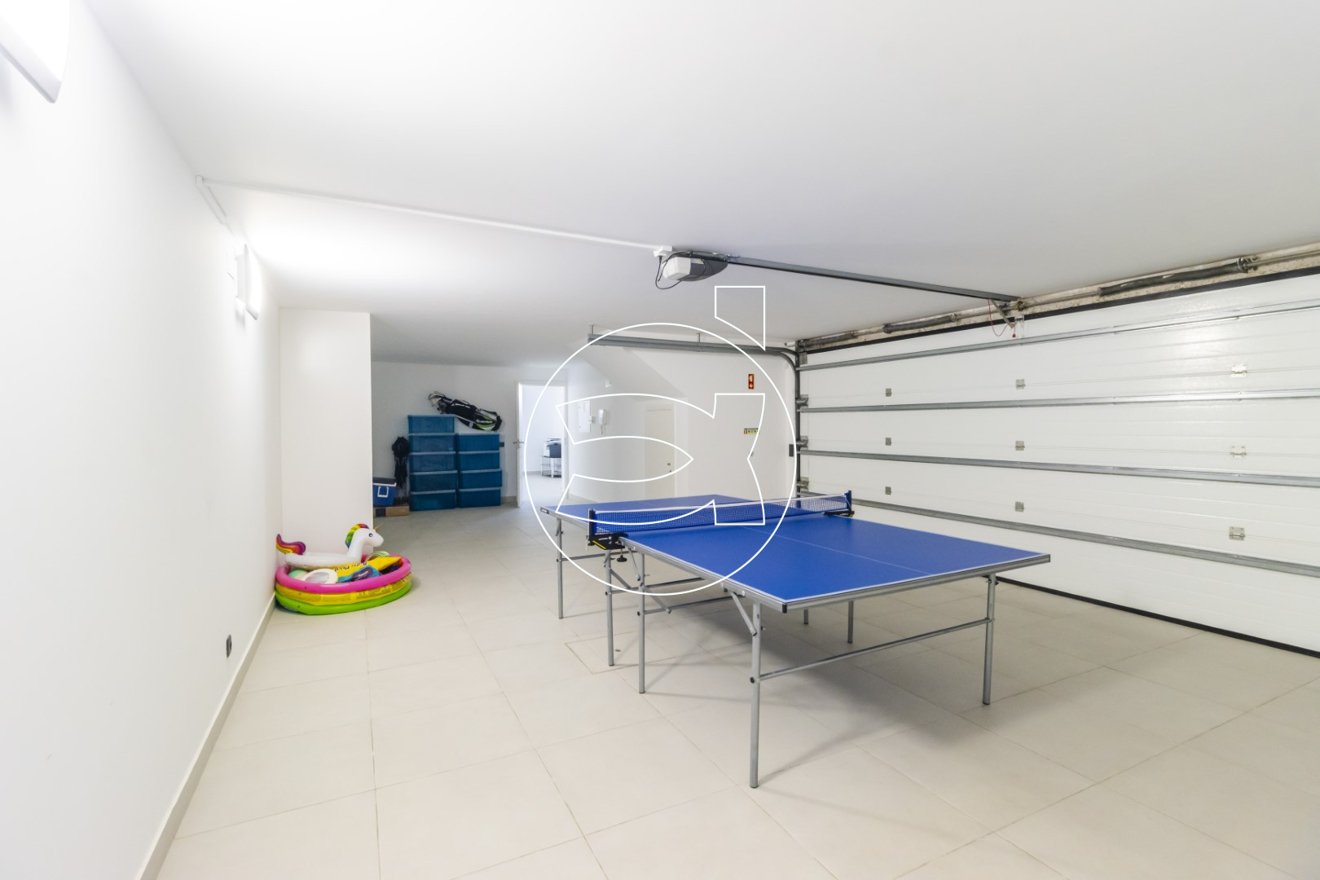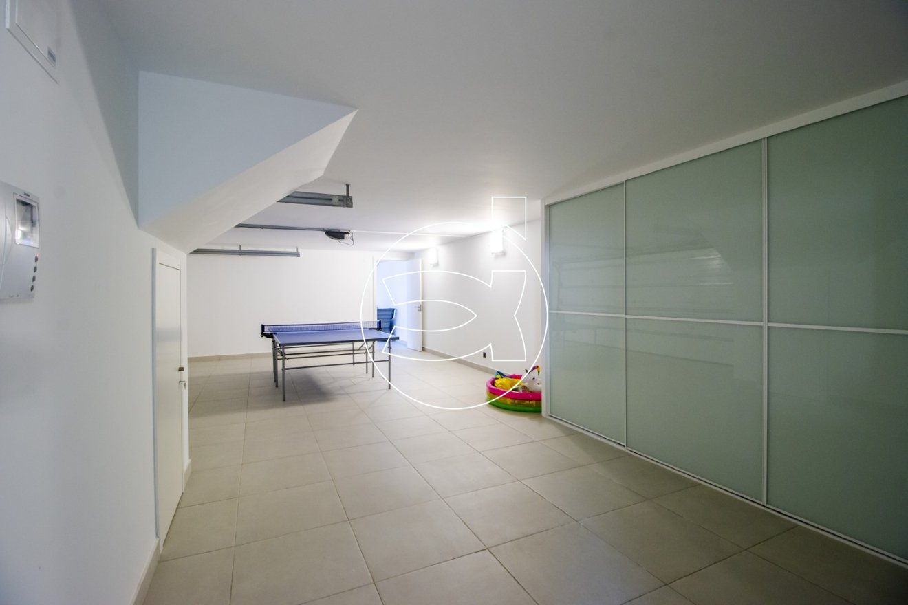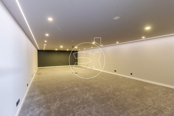 Im unteren Erdgeschoss befinden sich ein Kino-/TV-Raum, eine Waschküche, eine Doppelgarage, viel Stauraum sowie ein Badezimmer.