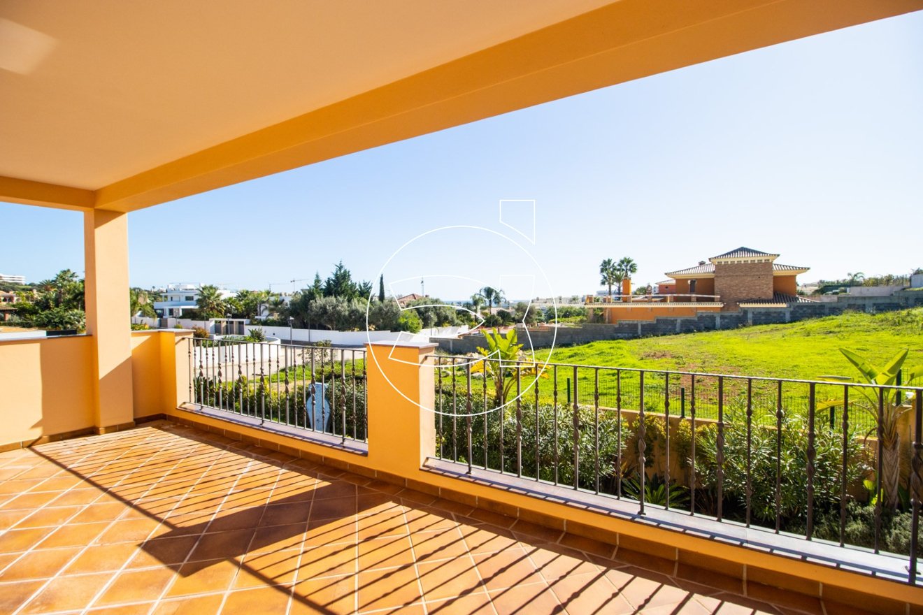 Das Hauptschlafzimmer hat eine Minibadewanne und eine begehbare Dusche. Beide Schlafzimmer haben Zugang zu einer beeindruckenden, umlaufenden Terrasse mit weitem Meerblick sowie einer Treppe, die hinunter in den Garten führt.