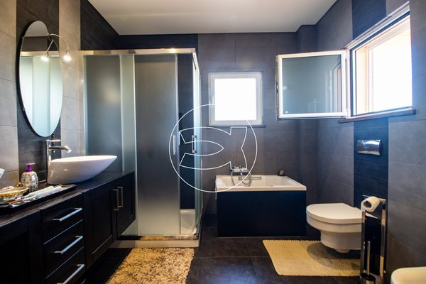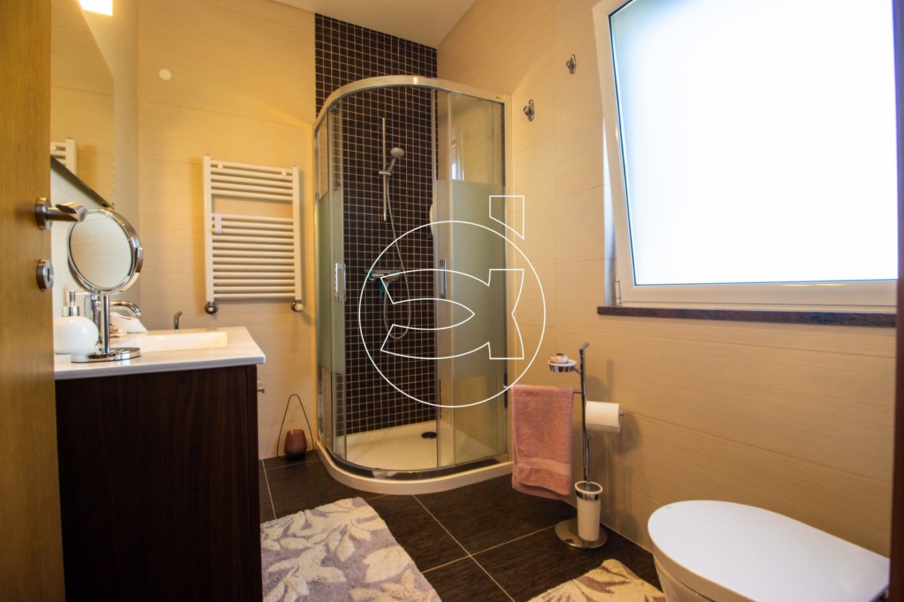 Auf dieser Ebene befinden sich auch zwei geräumige Doppelschlafzimmer. Eines davon hat ein eigenes Bad, das andere verfügt über ein Duschbad. Von dieser Ebene aus haben Sie auch Zugang zur Doppelgarage.
