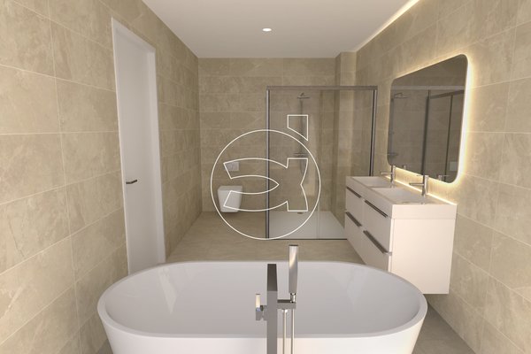 Im Erdgeschoss befindet sich die Eingangshalle mit einer Treppe, die in die obere oder untere Ebene führt. Vom Eingang gelangen Sie in den Wohn-/Essbereich, der wiederum mit einer modernen Küche verbunden ist.