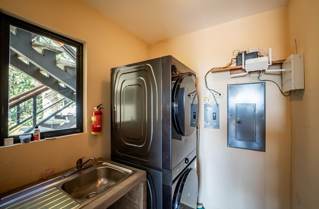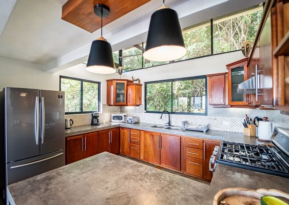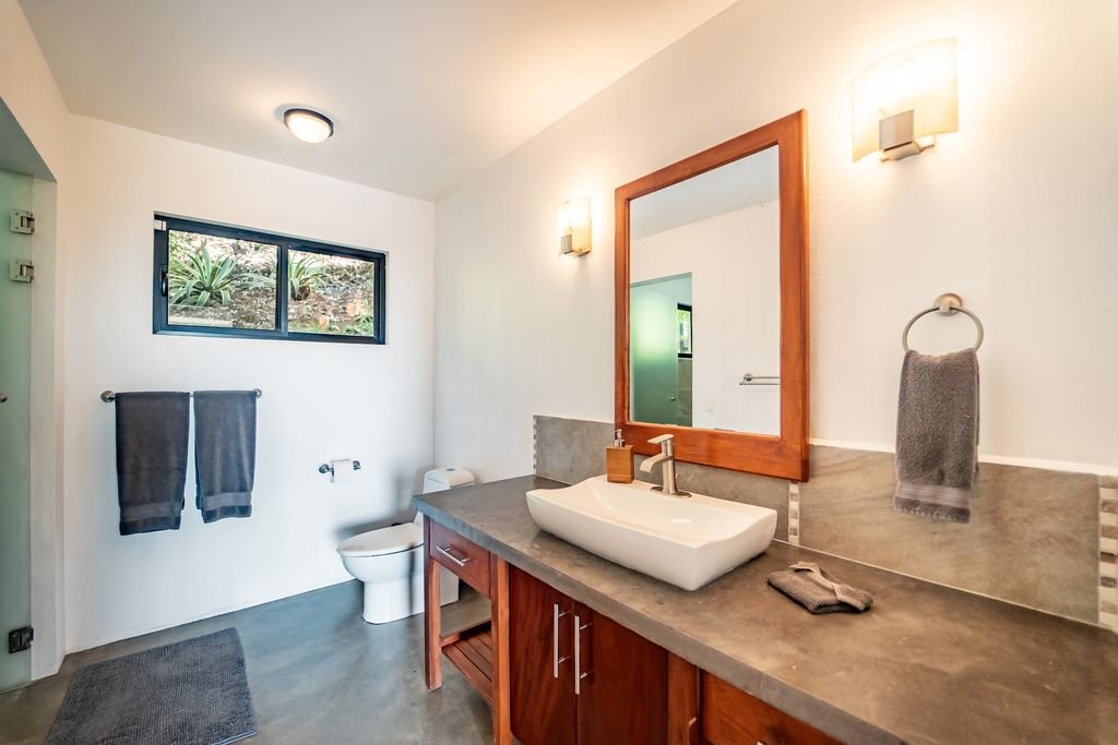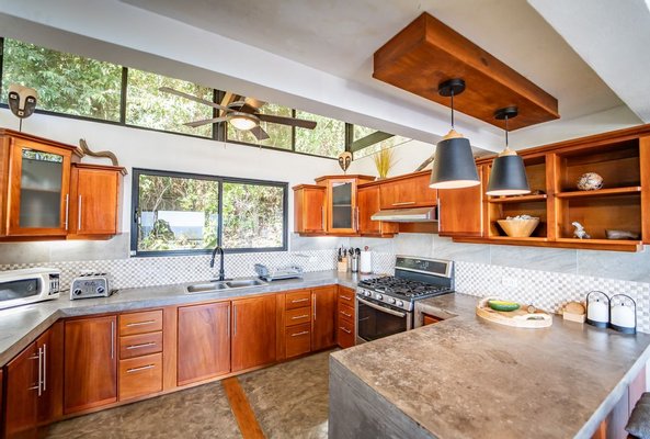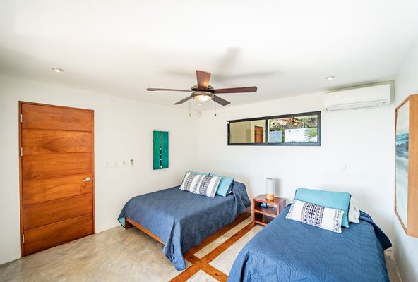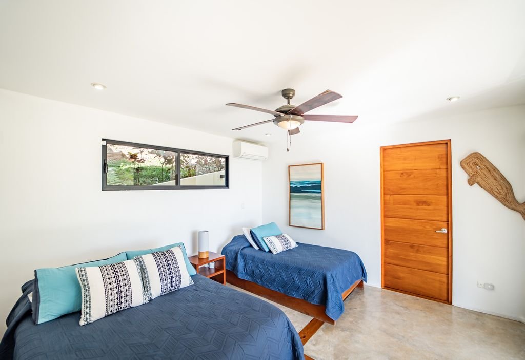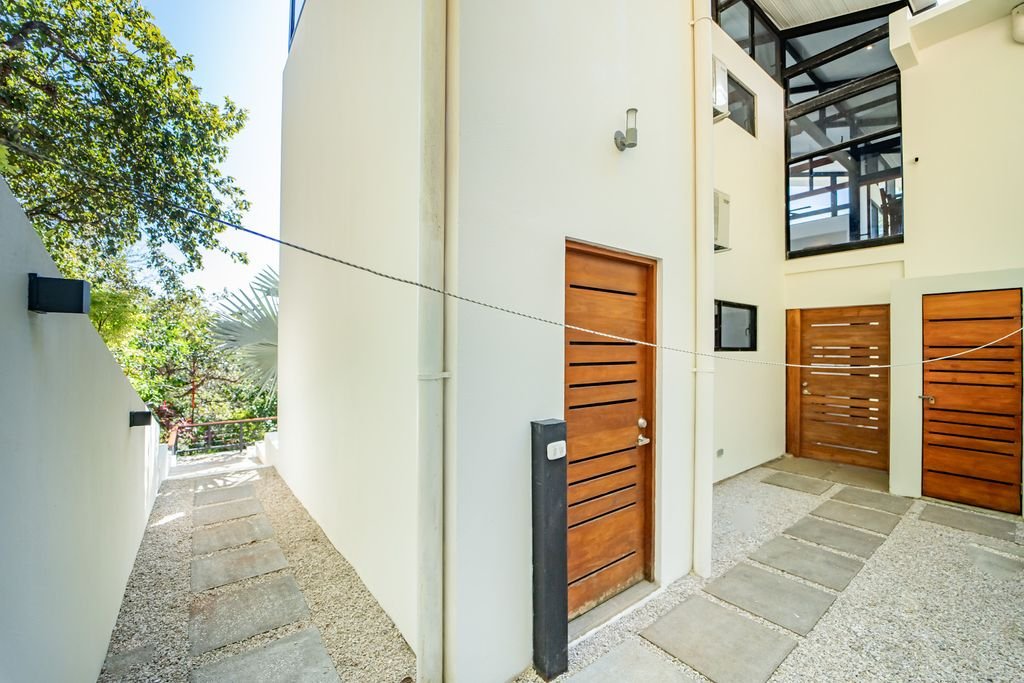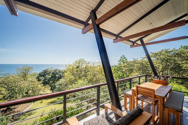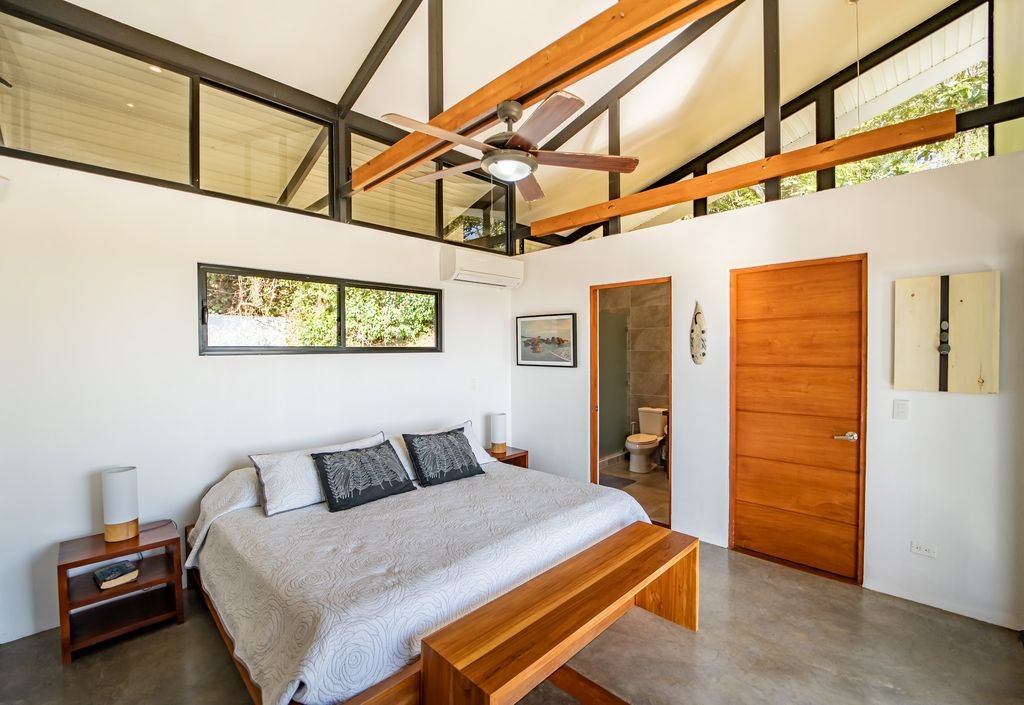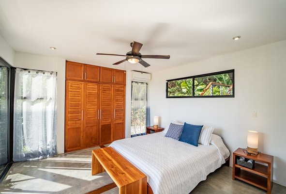 Erleben Sie den Inbegriff von Komfort und Bequemlichkeit mit einer Kombination aus solider Bauweise, modernen Annehmlichkeiten und lokal gefertigter Einrichtung. Steigen Sie auf einen der beiden überhängenden Balkone und genießen Sie die atemberaubenden 180-Grad-Ausblicke auf das Meer inmitten üppiger tropischer Vegetation. Das offene Design, kombiniert mit Deckenventilatoren in jedem Raum, sorgt für einen konstanten Luftstrom und schafft eine entspannte Atmosphäre, die an ein tropisches Paradies erinnert. Für zusätzlichen Komfort ist in allen drei Schlafzimmern eine Klimaanlage vorhanden.