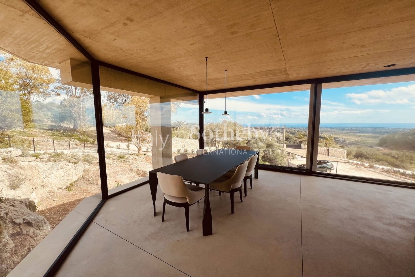 The fixtures, with their understated elegance and slender profiles, add a touch of modernity to the glass, allowing you to fully enjoy the panoramic views that surround the villa.